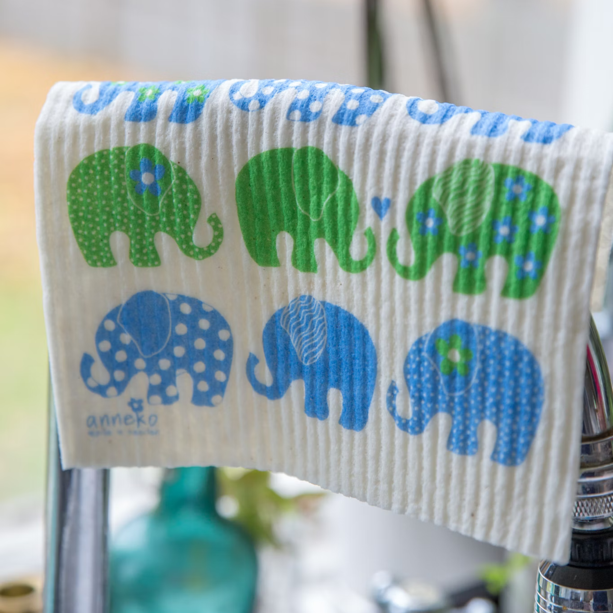 Amazing Swedish Dishcloth - Elephants (Blue & Green)