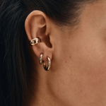 Bold, with its wide, softly rounded shape, can be seen here as trendy ear cuffs. They are perfect for everyday wear and look great when paired with Bold Hoops. Seen in shiny 14K gold plating.