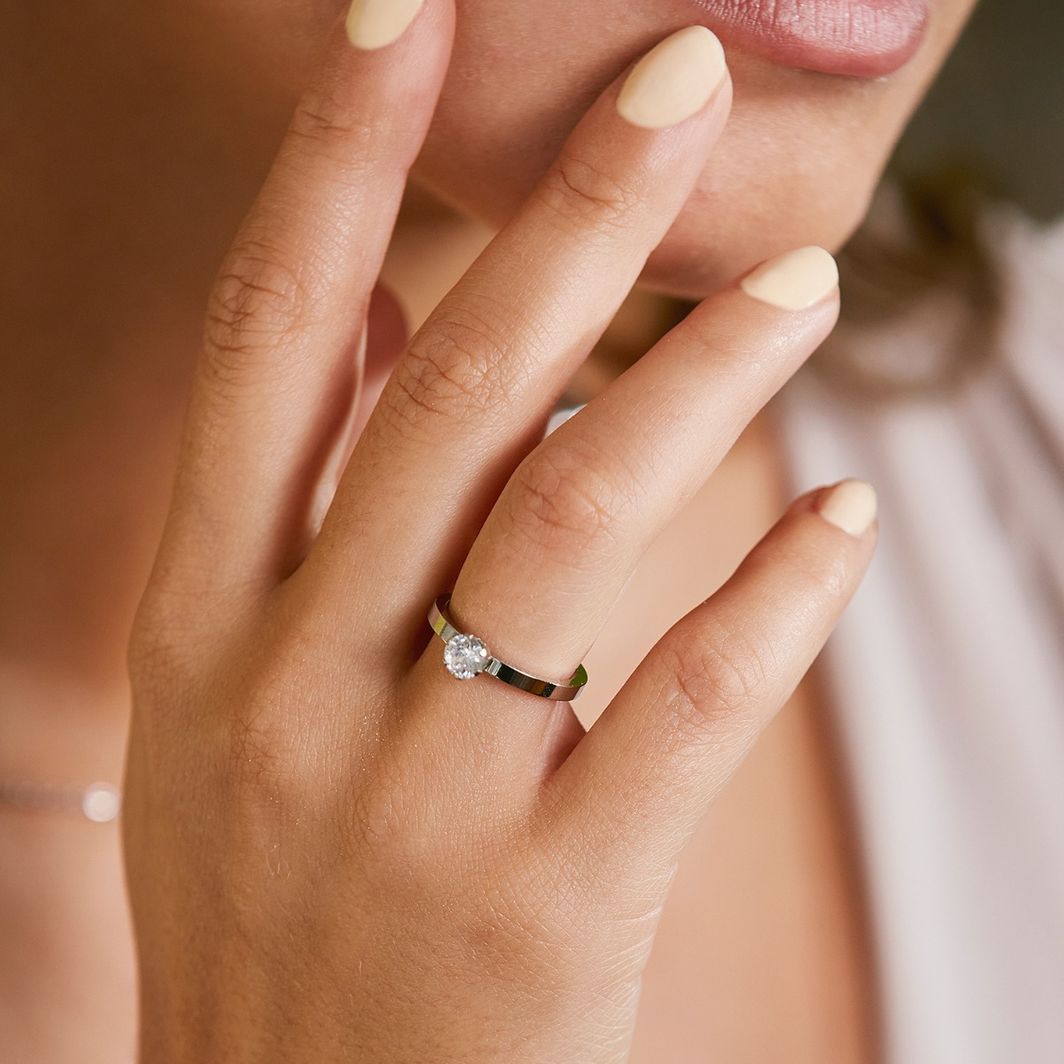 - Cubic zirconia, shiny stainless steel