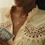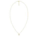 Thassos is one of our top-selling lines with versatile pieces suitable for both everyday and festive occasions. Thassos Necklace S has a smaller round feature piece adorned with one large and 11 small clear stones, delicately secured by a thin chain, seen here in shiny 14K gold plating. Thassos also makes a great gift.