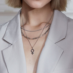 Tinsel Thin is an especially thin and elegant chain with a sparkling effect. The many small, metal loops are delicately interlinked to form a refined necklace, seen here in shiny stainless steel. Tinsel Thin is ideal for layering for a more personalised look.Keep in mind that the chain, with its special construction, can rub a little against delicate fabrics or get fuzzy from knits, so be careful with which garments you wear your necklace.