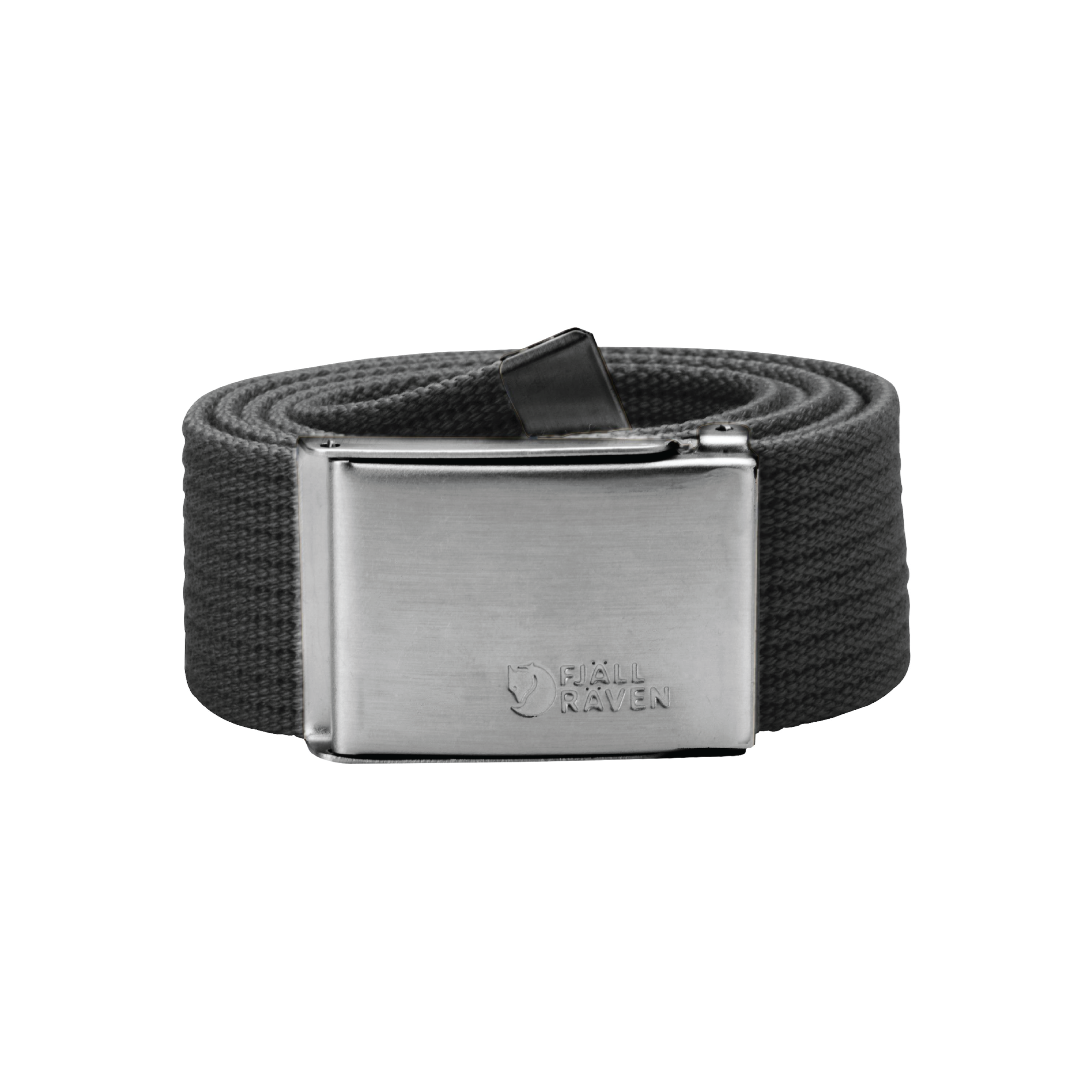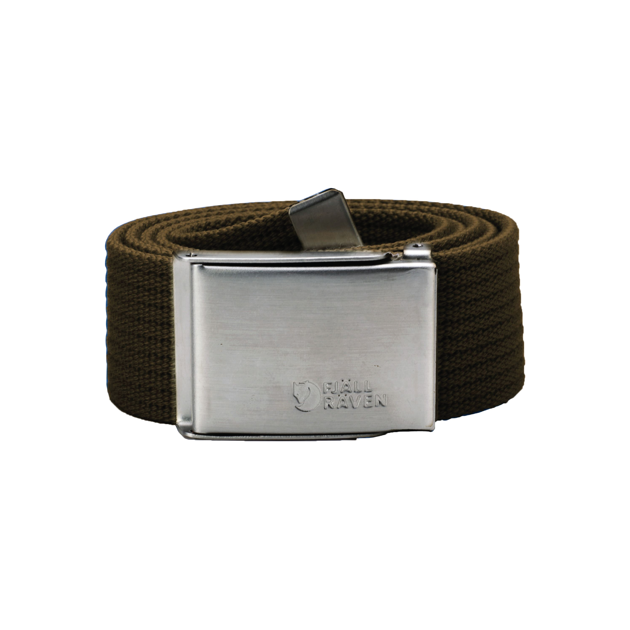 The Fjallraven Canvas Belt is tasked with keeping your pants up. A simple metal buckle features the Fjallraven name and fox logo. The canvas portion is 1.5 inches wide, so slide it through the loops and secure it at the front.