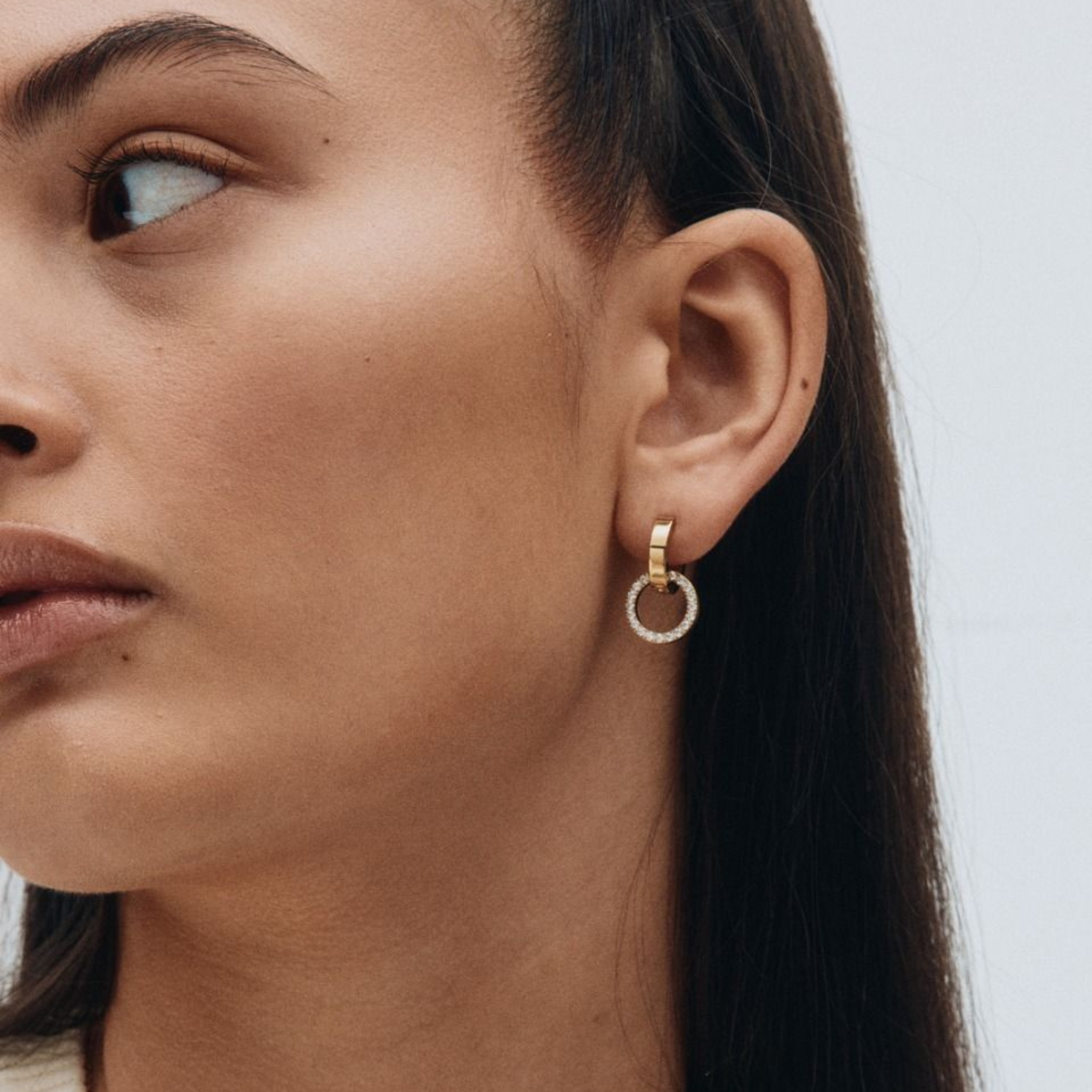The Eternal Orbit series draws its inspiration from Edblad's classic Eternity series. These beautiful earrings feature a smaller creole that holds a larger ring with clear stones adorned around the entire outer ring. Wonderfully elegant earrings that suit all occasions, seen here in shiny 14k gold plating. Combine with the necklace. Eternal orbit makes an ideal gift.