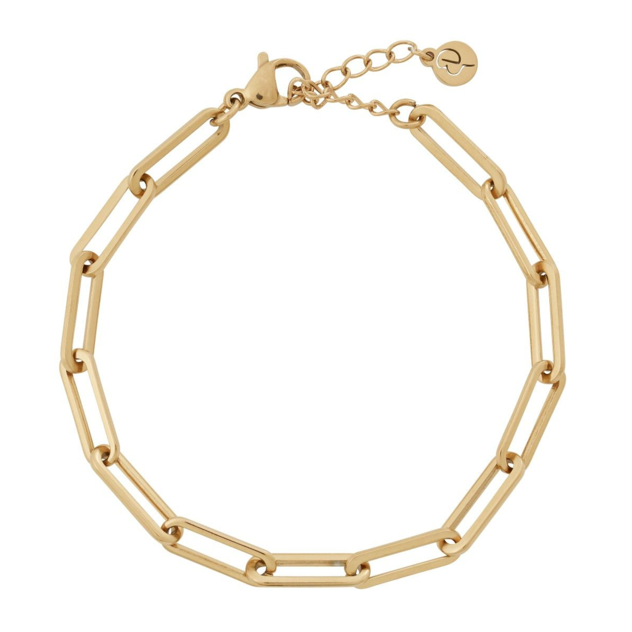 Ivy Chain is a stylish chain with large, long narrow links. It is beautifully minimalist on its own, but also looks great when paired with several chains and bracelets from the Edbald range. Ivy Chain Bracelet L is seen here in shiny 14K gold plating.