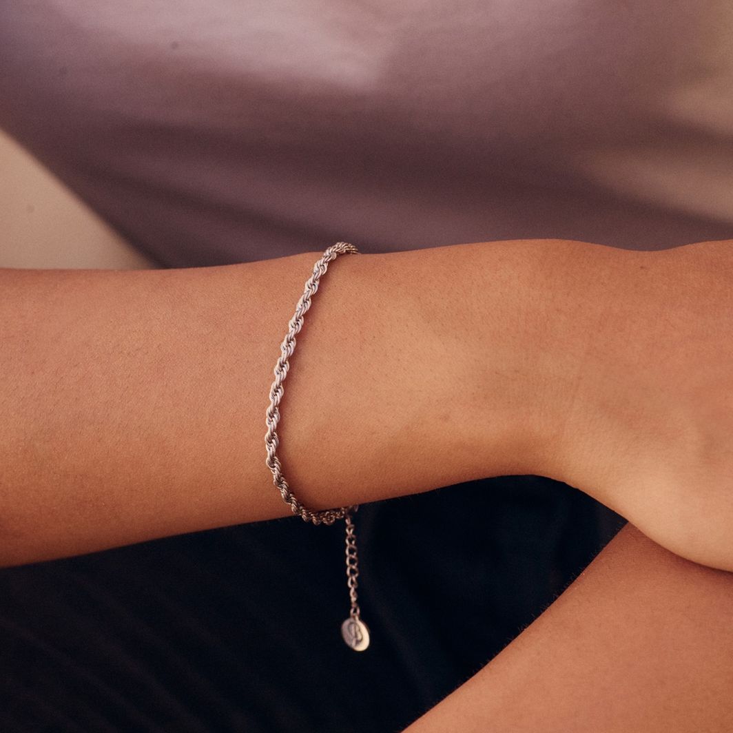 Rope Chain bracelet is a stylish cordell chain in shiny stainless steel. Wear it on its own or with several bracelets for a personalized look.