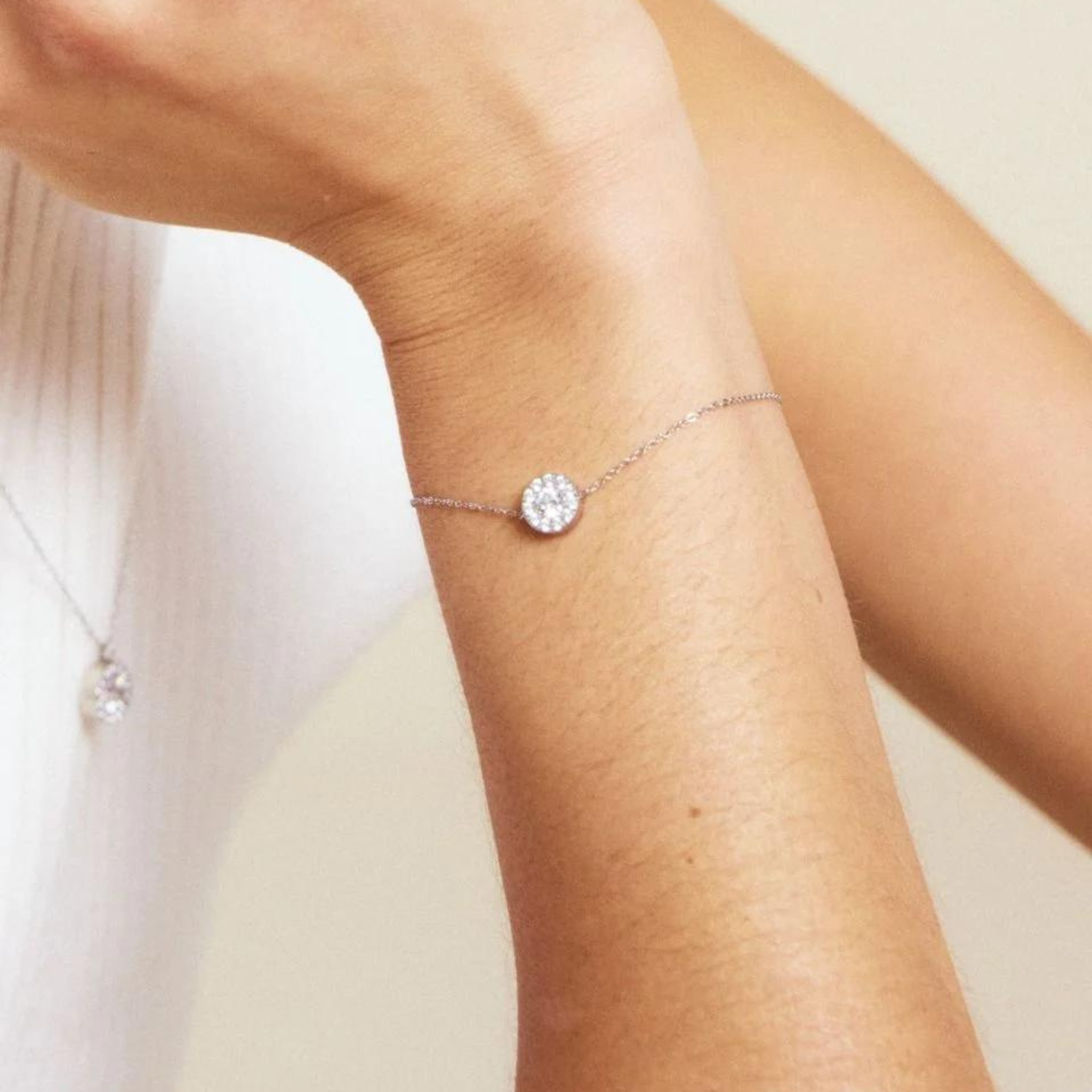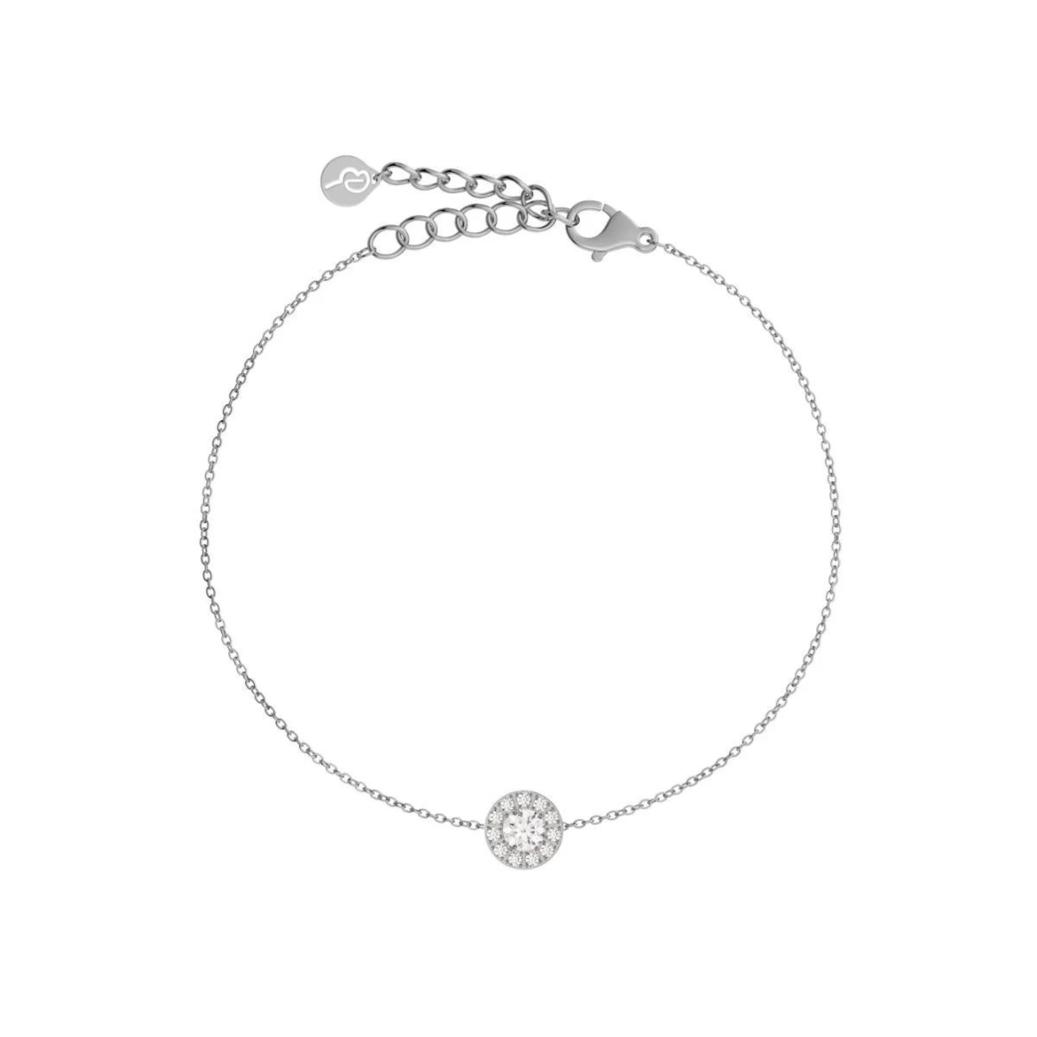 Thassos is one of our top-selling lines with versatile pieces suitable for both everyday and festive occasions. Thassos Bracelet has a round feature piece adorned with one large and 11 small clear stones, delicately secured by a fine thin chain, seen here in shiny stainless steel. Thassos also makes a great gift.