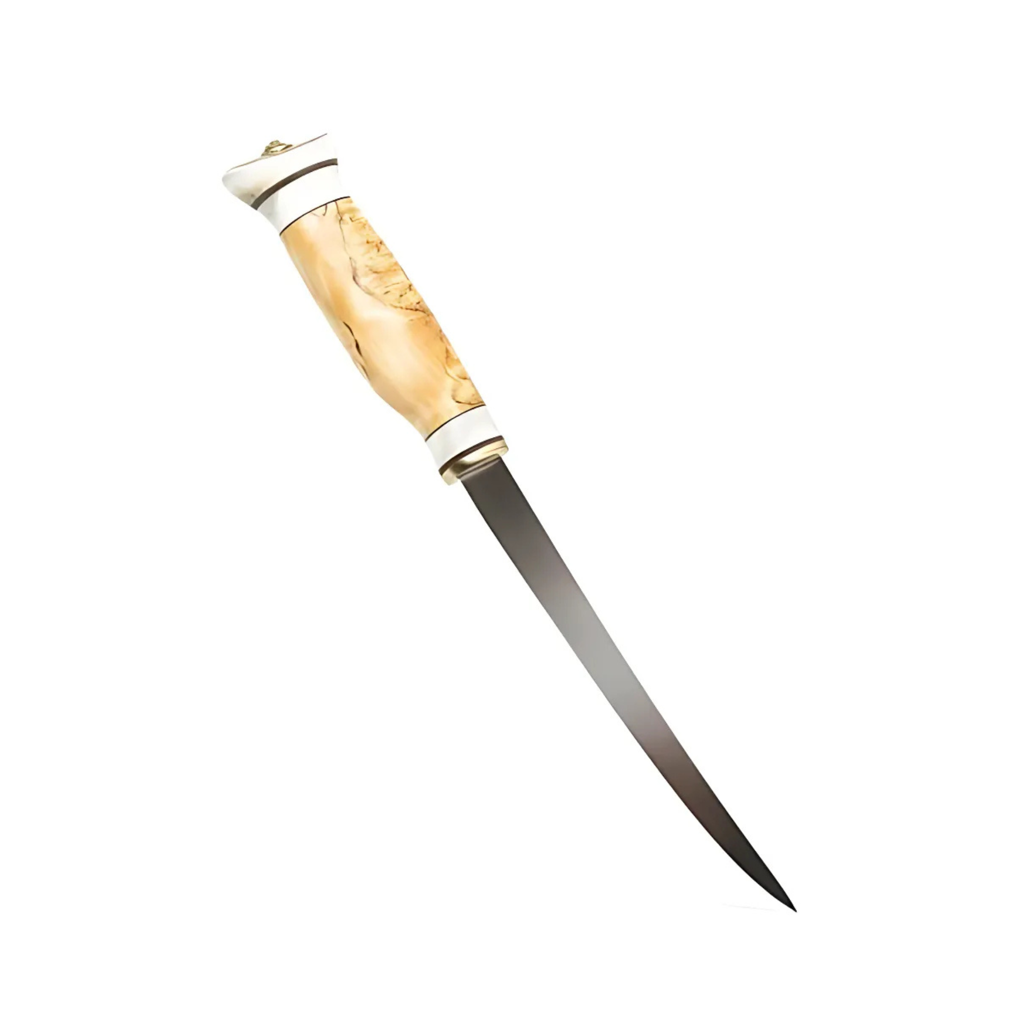 Designed for precision and durability, this Lapland Fillet Knife features a 6.25 inch stainless steel blade and 4.5 inch handle, making it ideal for cleaning and filleting fish with ease. The flexible yet sturdy blade allows for smooth, accurate cuts, ensuring efficiency whether you’re at home or in the great outdoors. The knife comes with a naturally tanned leather sheath, beautifully decorated with a fish motif, reflecting its Nordic heritage.