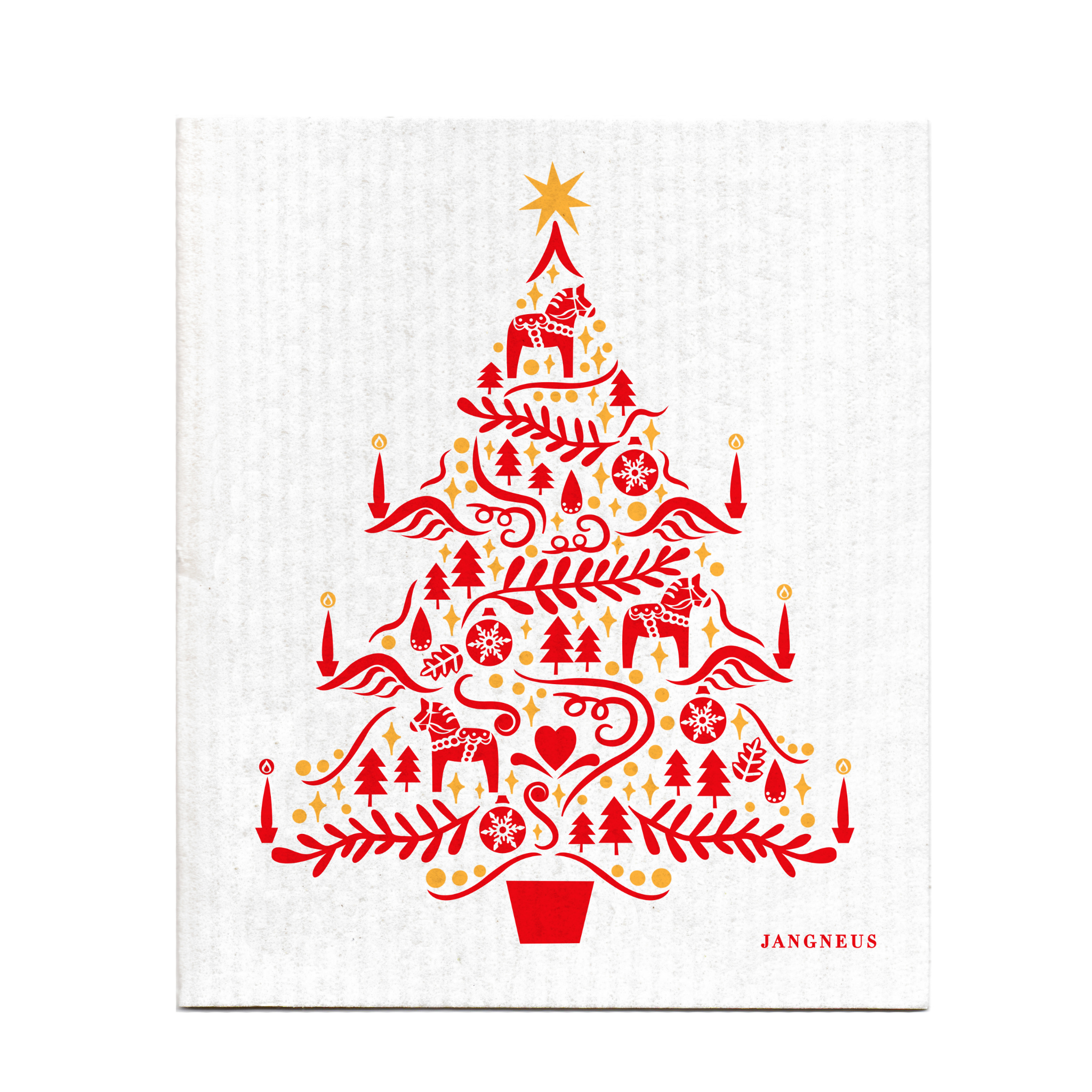 Amazing Swedish Dishcloth - Red Scandi Christmas Tree