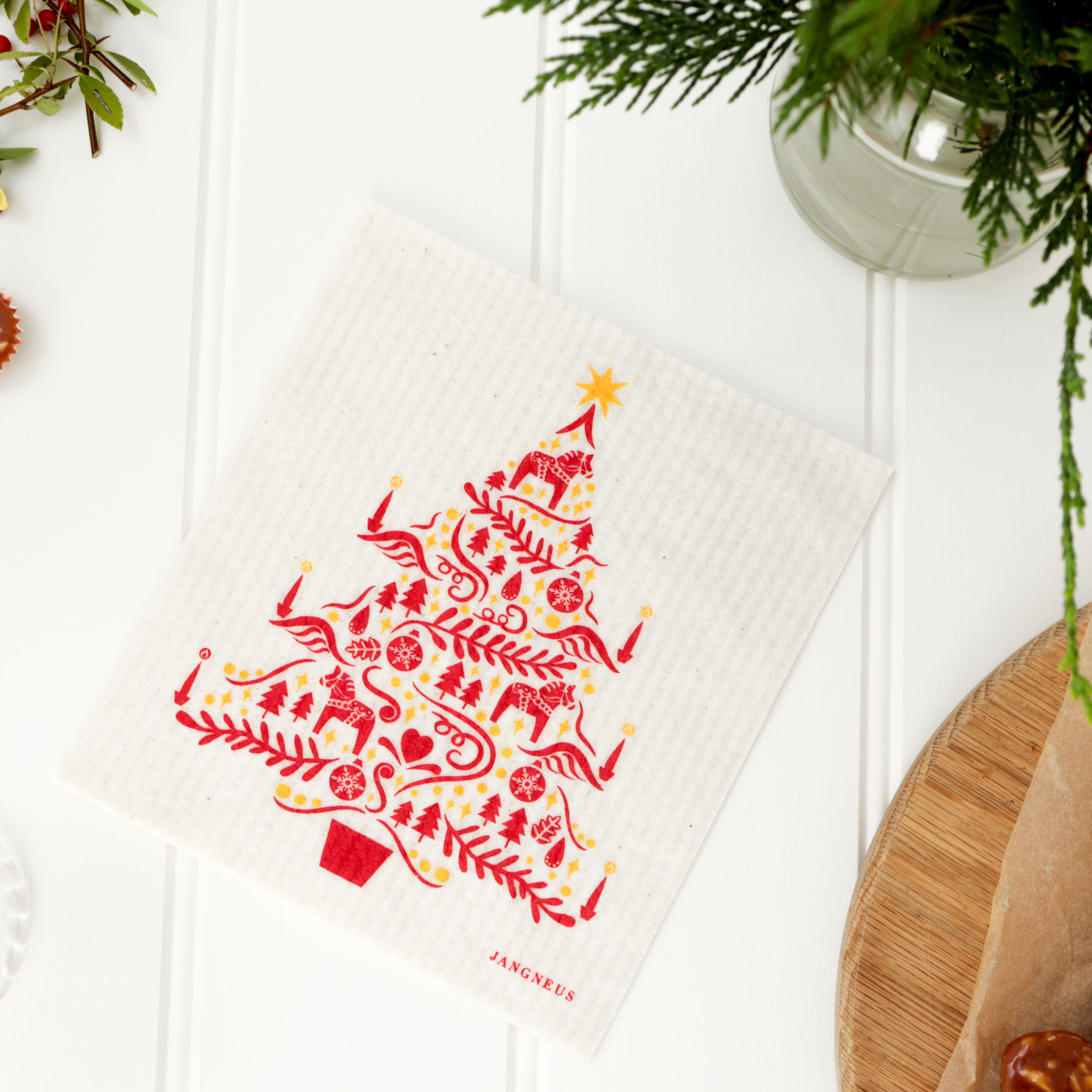 Amazing Swedish Dishcloth - Red Scandi Christmas Tree
