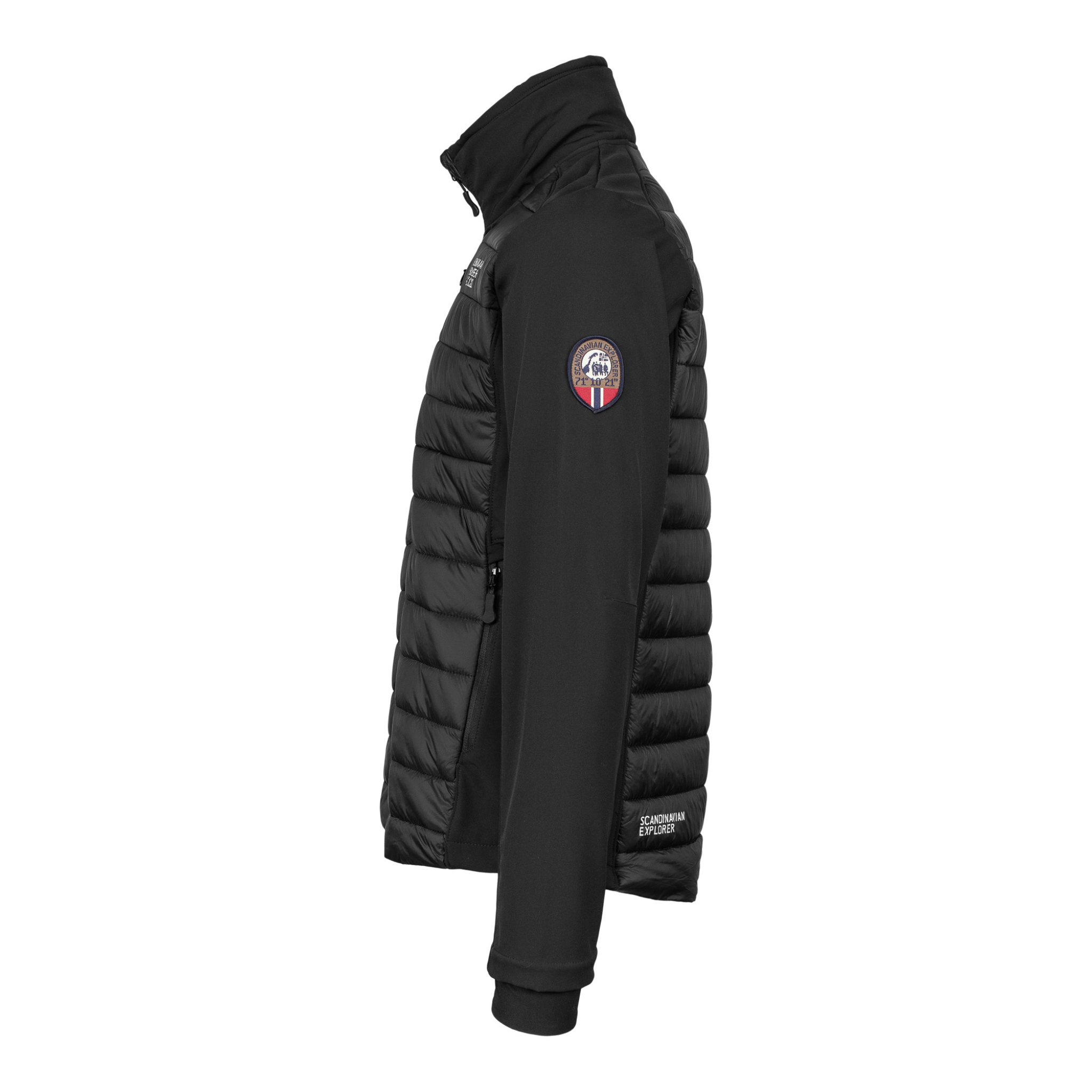 Unisex waterproof hybrid jacket from Norwegian brand Scandinavian Explorer. The jacket has a hood that can be hidden with a zippered compartment at the neck.