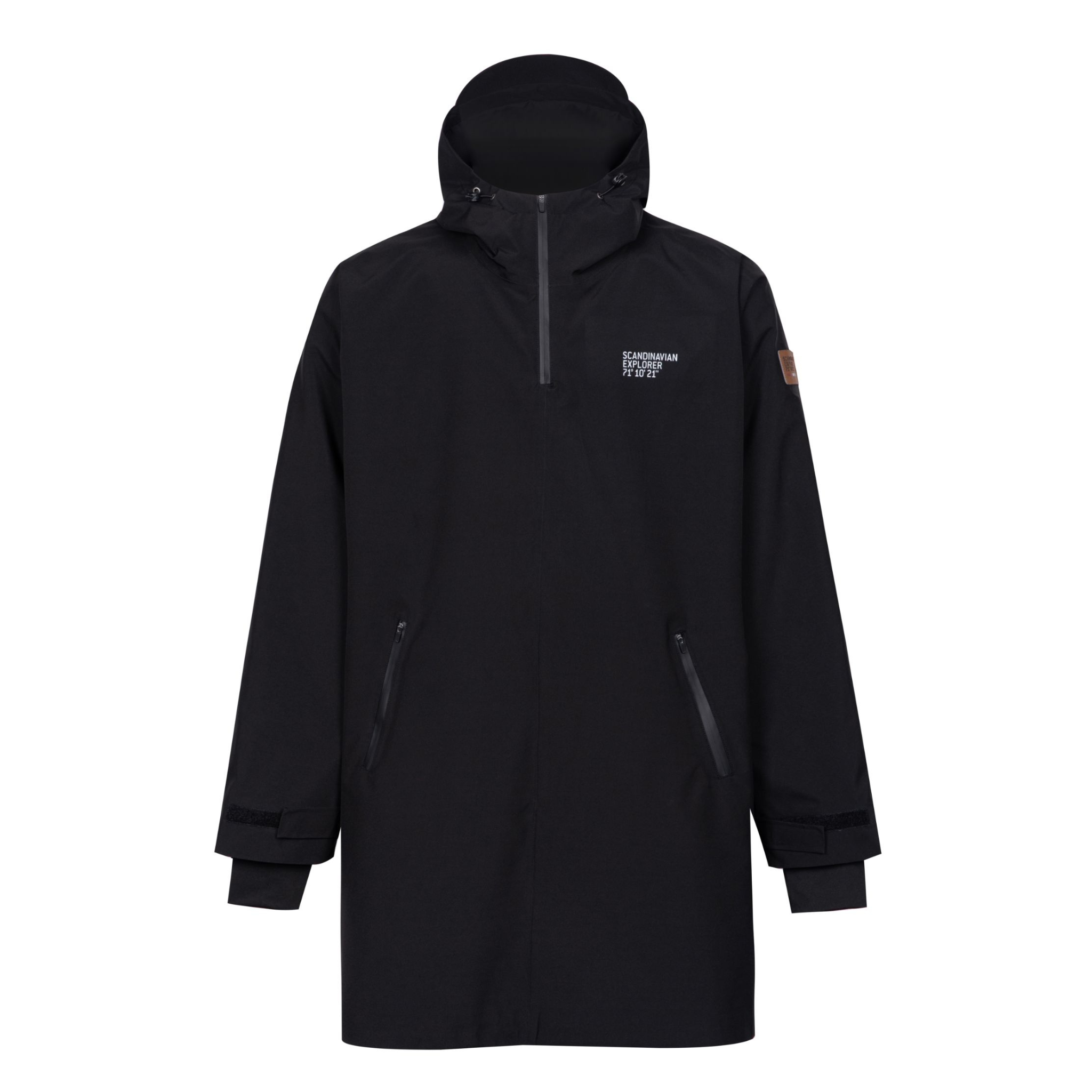 Discover the Scandinavian Explorer rain poncho, designed in an oversized fit. With its sleek, minimalistic design and strong technical features, this poncho is perfect for rainy days. With a waterproof rating of 20.000 mm and breathability of MVP 5000, you get full protection against both rain and wind. Taped seams prevent water from entering, and the robust windproofness provides extra comfort in all weather conditions. Choose your usual size for an oversized look, or size down for a more tailored fit.