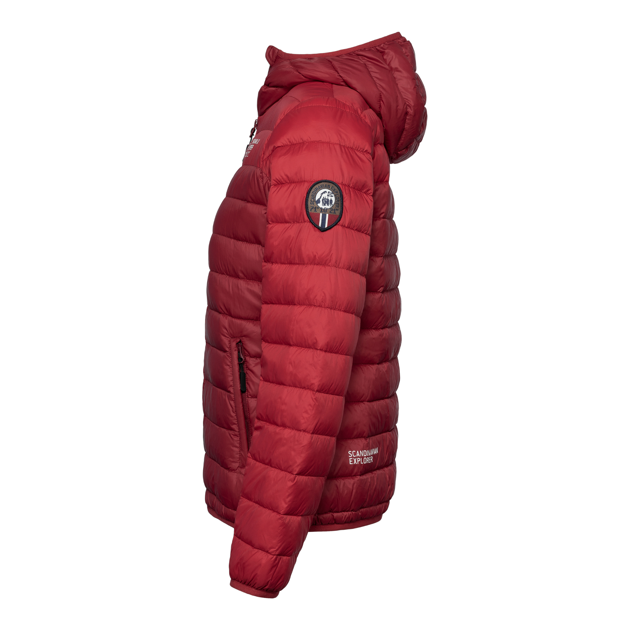 This down jacket combines style and functionality, with good insulation that keeps you warm regardless of activity. With wind-resistant functionality, two zippered pockets, and a practical hood, the jacket is perfect for both city life and outdoor adventures. The elastic hem provides extra comfort, and the lightweight 2-layer material ensures good heat retention. The jacket can easily be compressed and packed into its own bag, making it easy to gake with you on the go. The jacket is made with RDS-certified down and is a byproduct of food production.