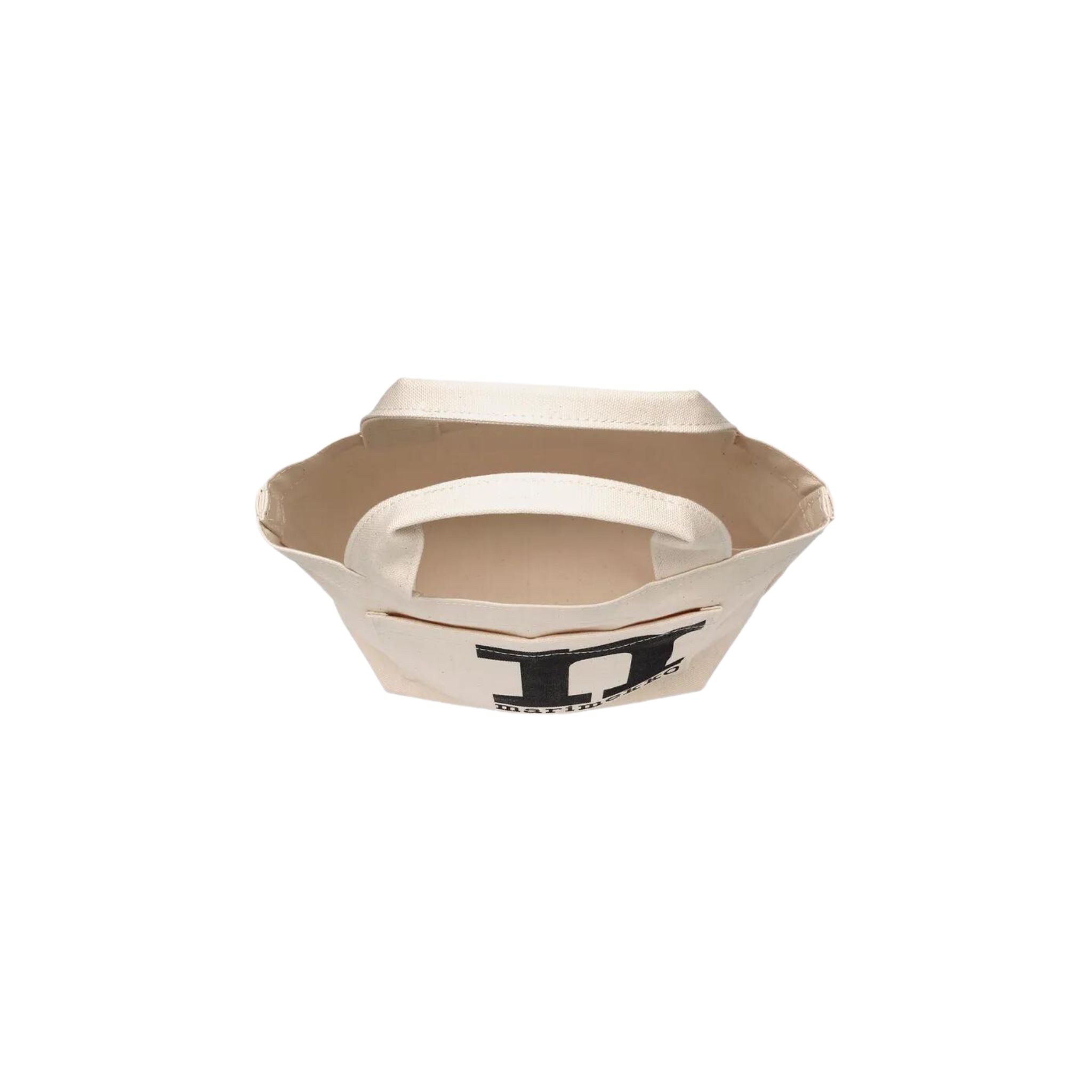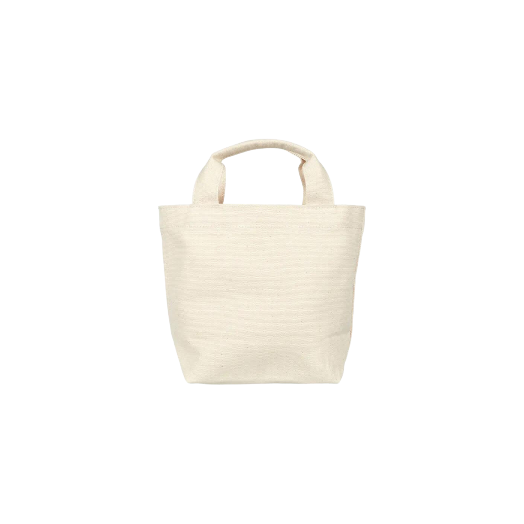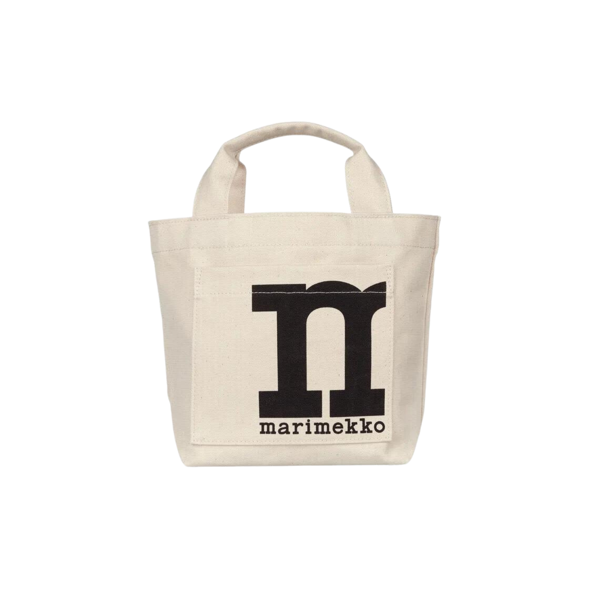 The Mono Mini Tote is made of unbleached organic cotton. The small bag has an open pocket on the outside.
