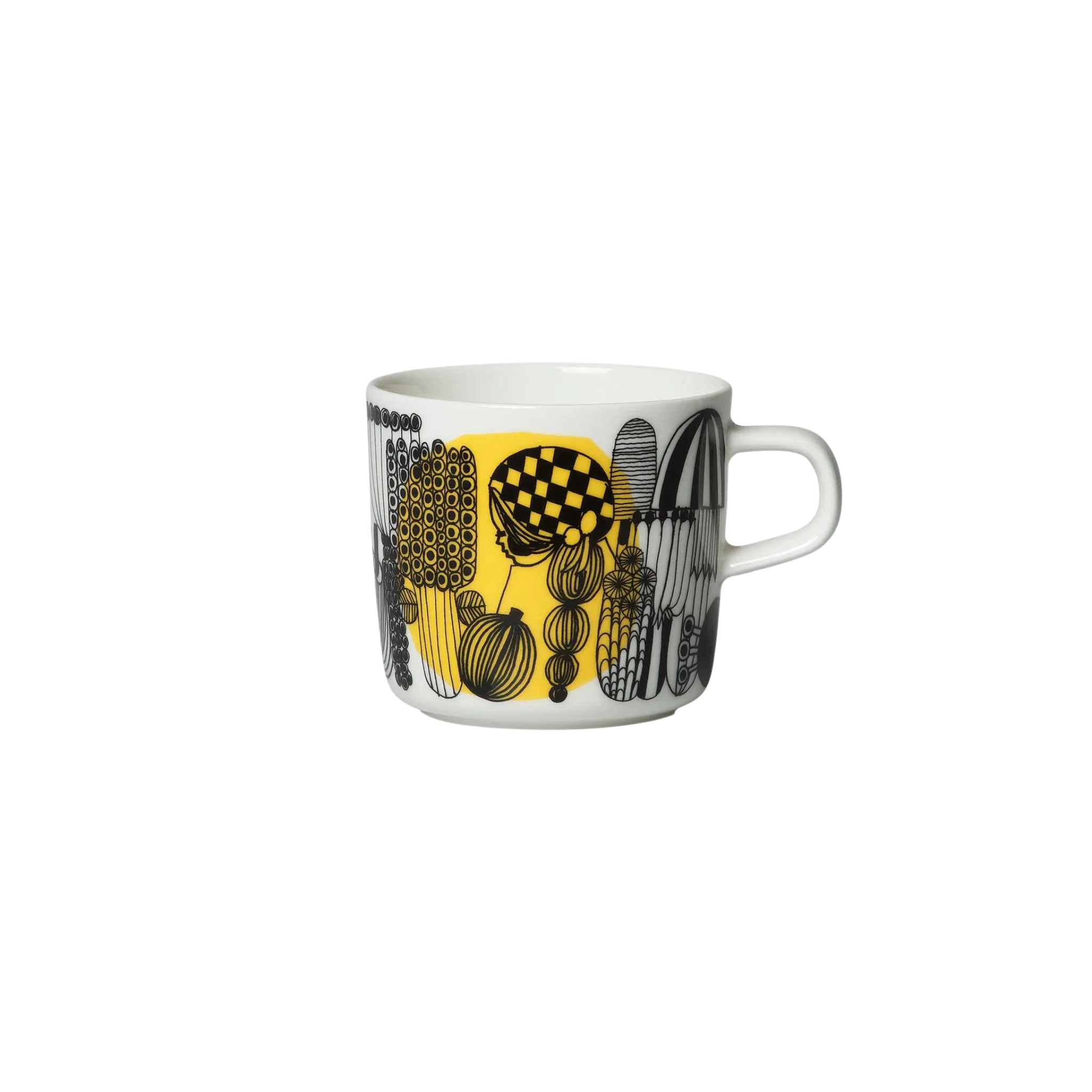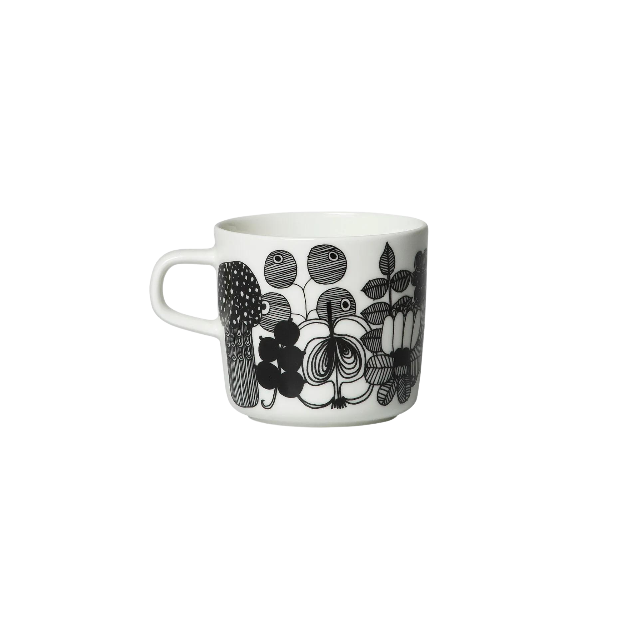 The Siirtolapuutarha (city garden) pattern on this Oiva coffee cup tells a journey from the bustling city centre to a community garden full of flowers and vegetables. The cup is made of dishwasher, oven, microwave and freezer proof white stoneware.