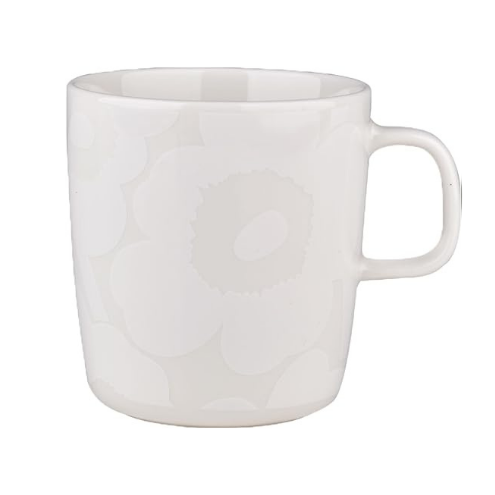Wake up. Taste the Flowers. The large Oiva mug is made of white stoneware that is dishwasher, oven, microwave and freezer proof.