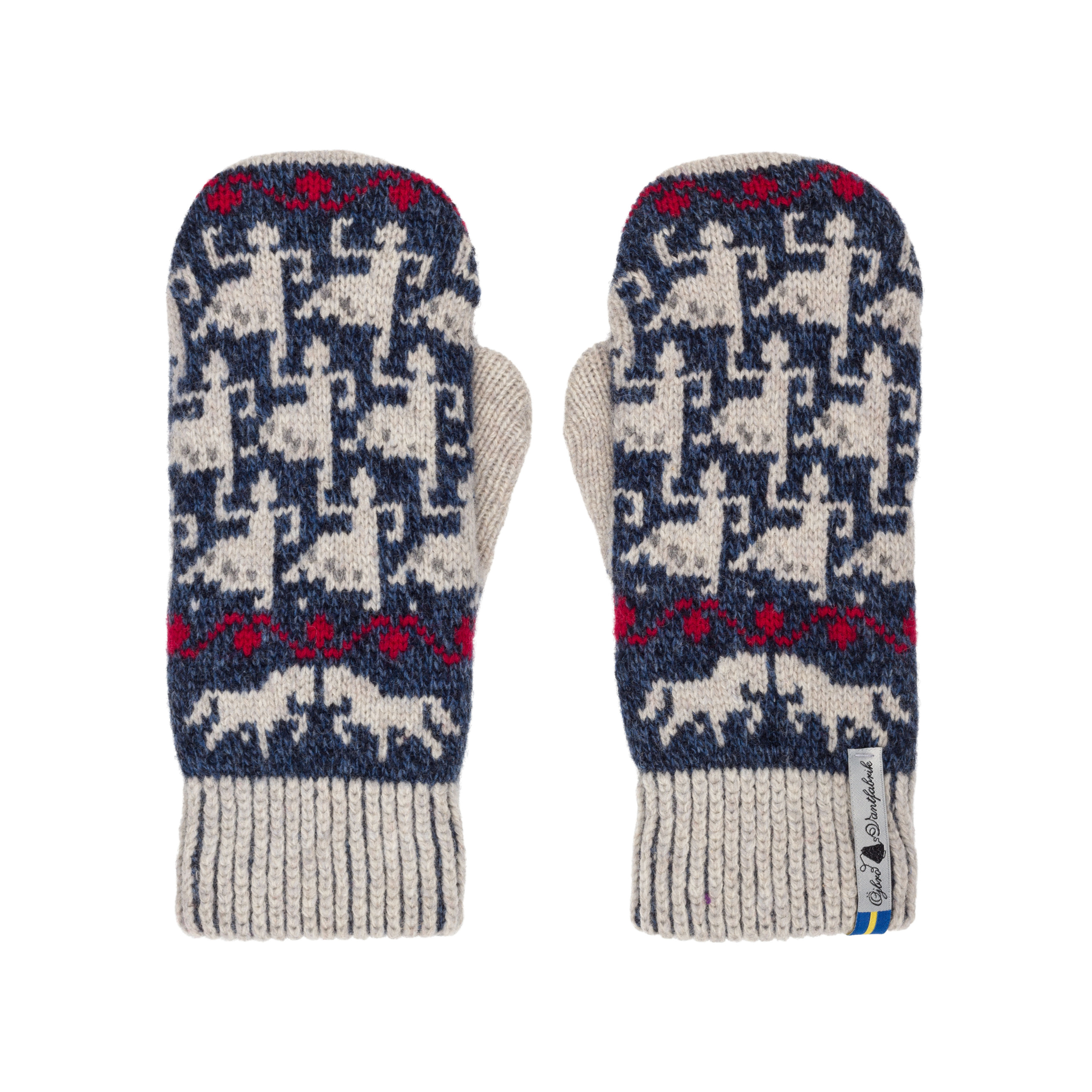 Ringdans Ester, this 4 layer mitten is knit in our Ringdans design. This design is inspired by the Swedish song "The maiden in the ring" and is patterned and in traditional colours. At Öjbro Vantfabrik they have made it their goal to keep various pattern traditions alive
