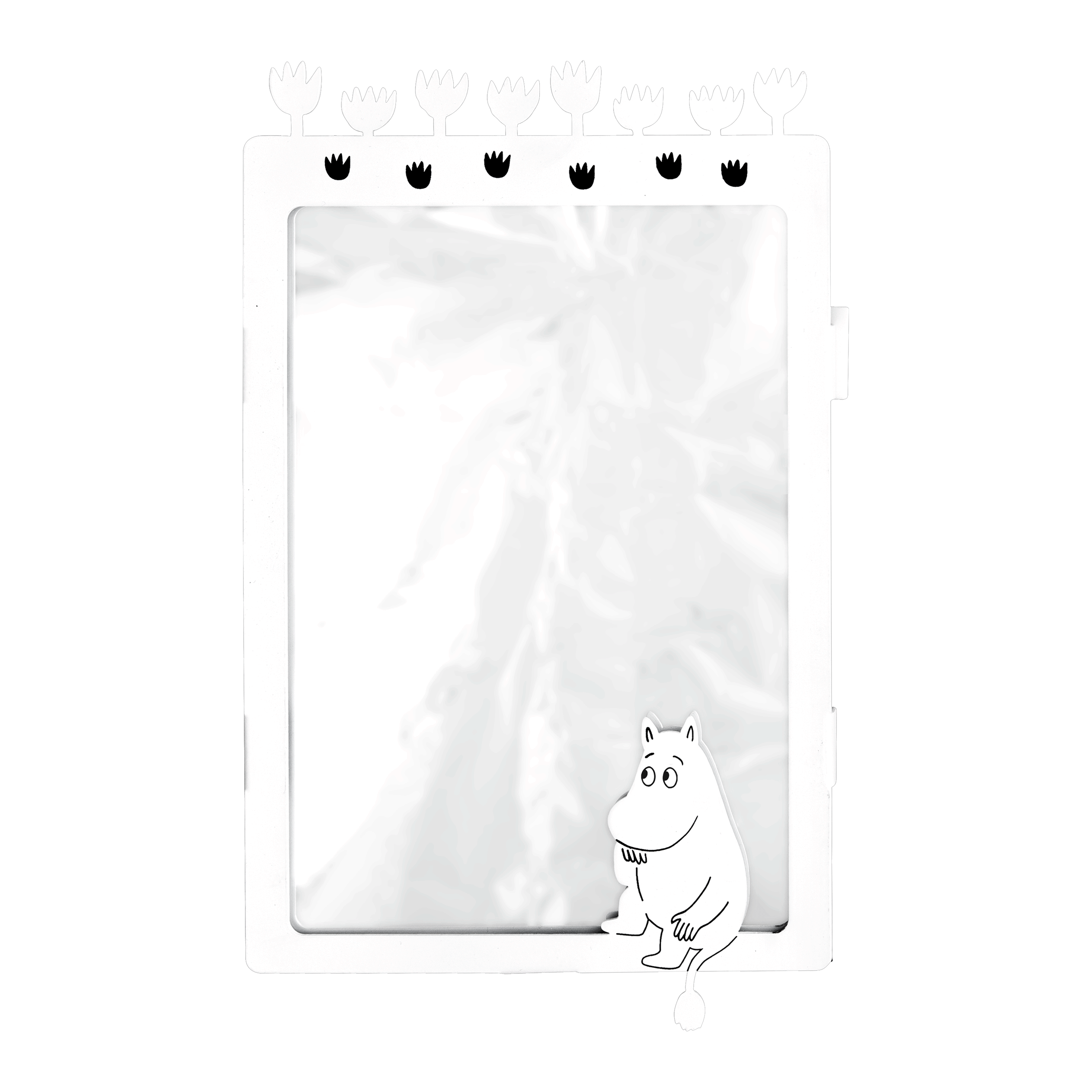 Small mirror in white metal with Moomin! Suitable for the small hallway, bathroom och kidsroom. Can of course be used by both children and grown ups!
