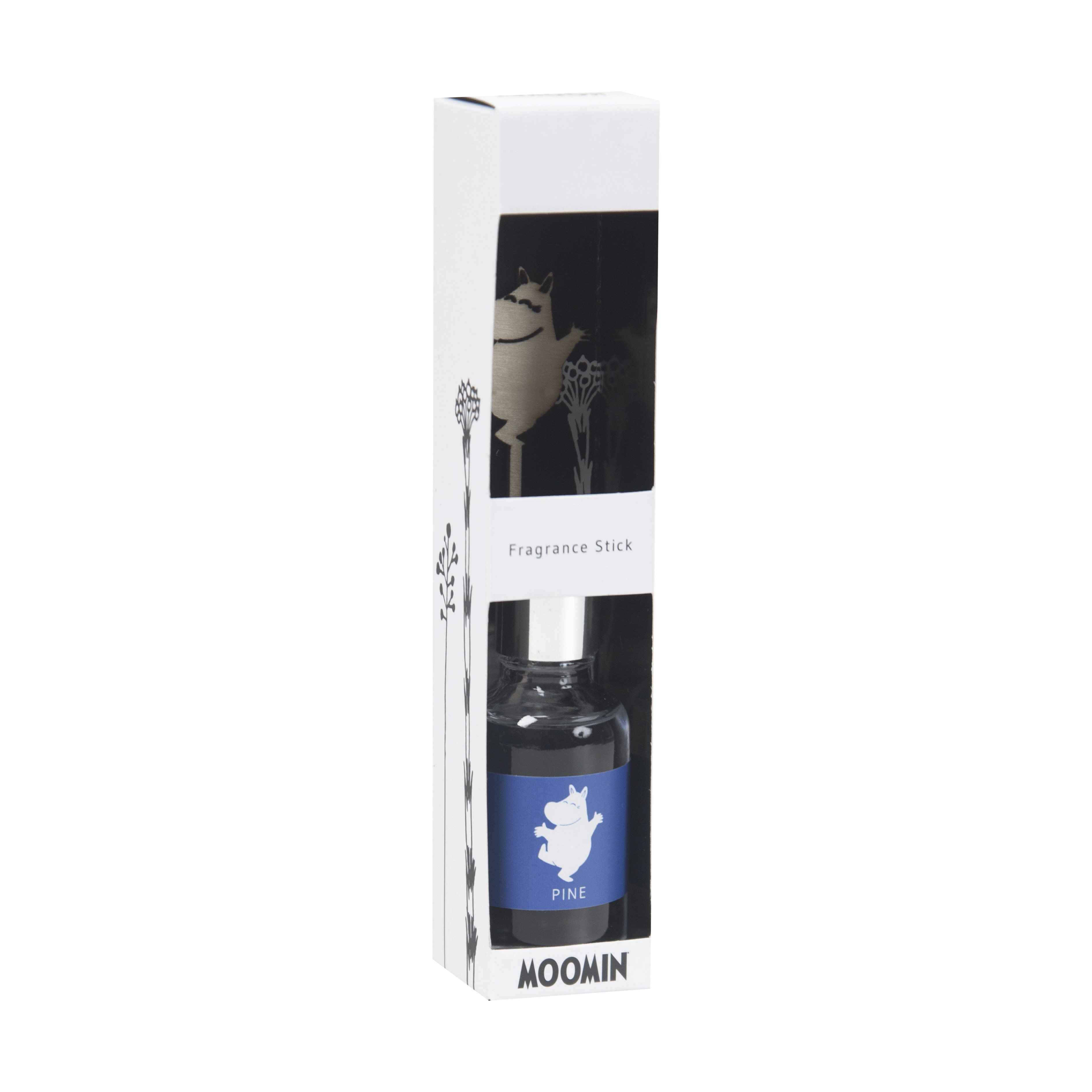 The Moomin fragrance stick fills your room with a masculine and clean scent of pine. The scent is spread using the stick in birch wood and lasts for up to 4 months. The container is made of glass.