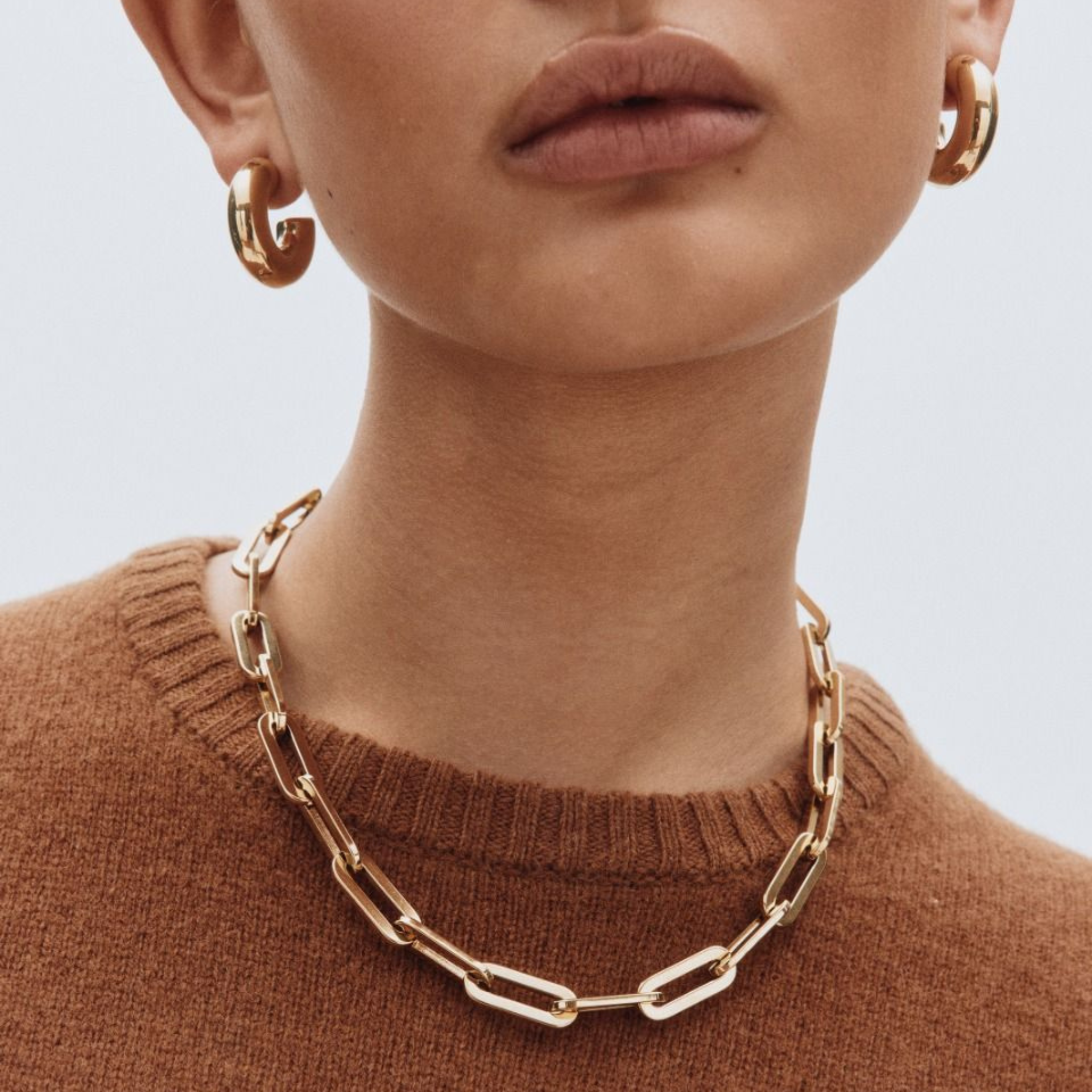 SIZE OF LINK 23X9 MM, NECKLACE LENGTH 45 CM, TOTAL 26 LINKS. SHINY 14K GOLD PLATING. NICKEL SAFE.