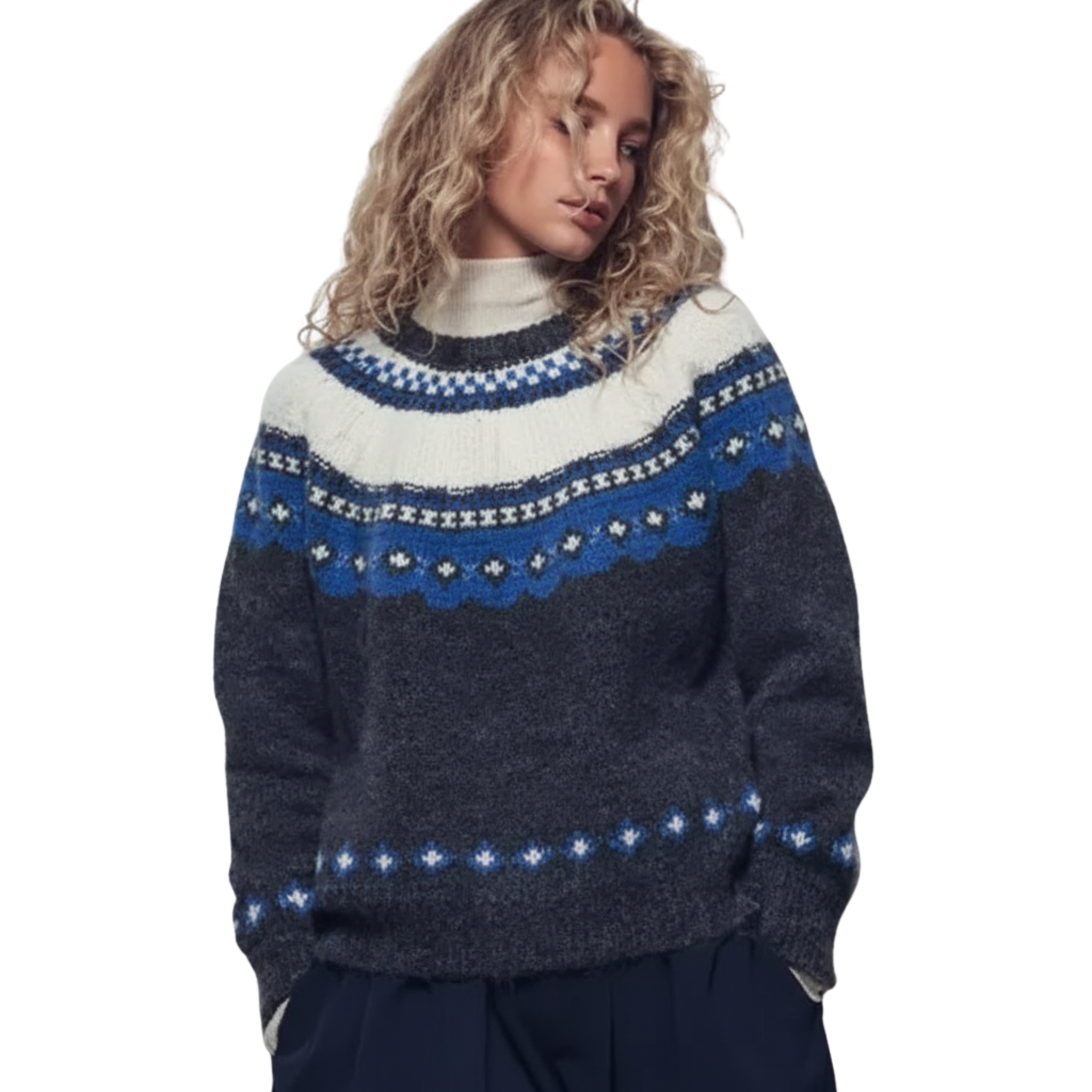 Icelandic Knit Pattern Turtleneck Sweater - Ivory Red