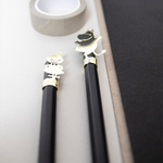 Decorate your home office with Moomin and Little My. Stylish black pencils with details in gold metal. Comes in a nice box with Tove Jansson's illustrations from the book Moominpappan's Memoirs.