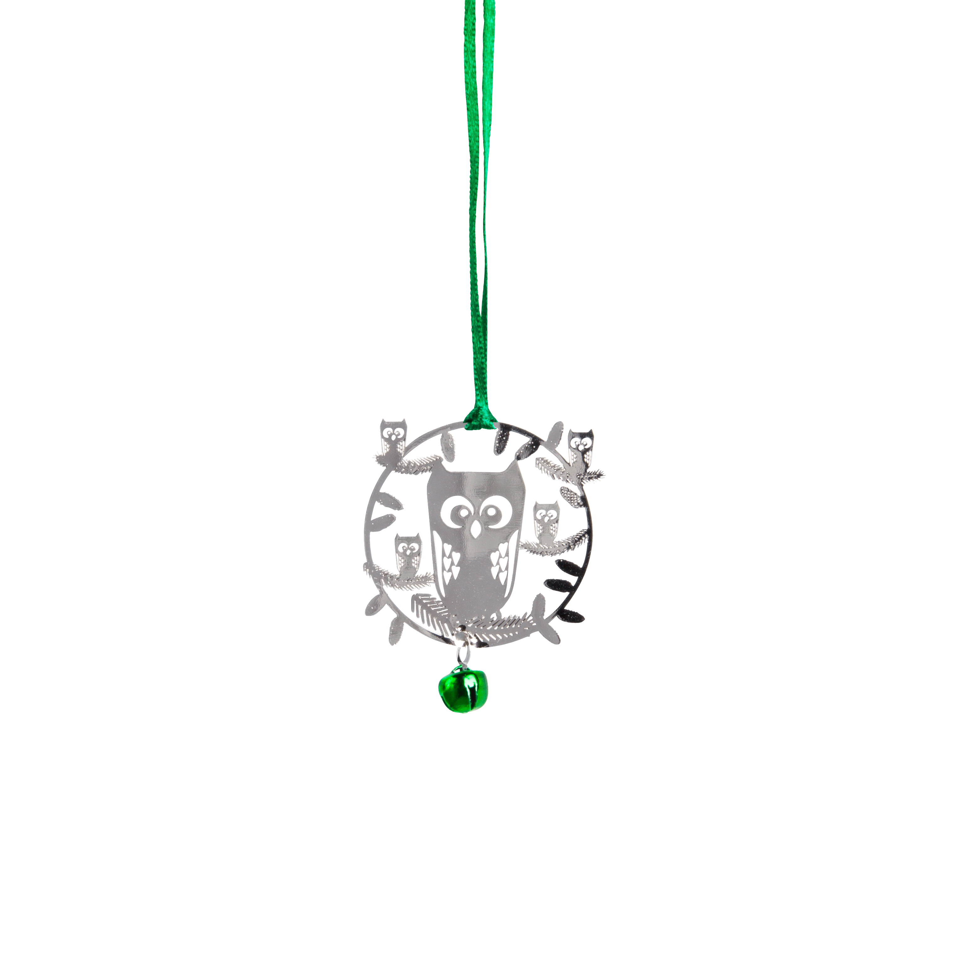 Metal silver hanging owl ornament.