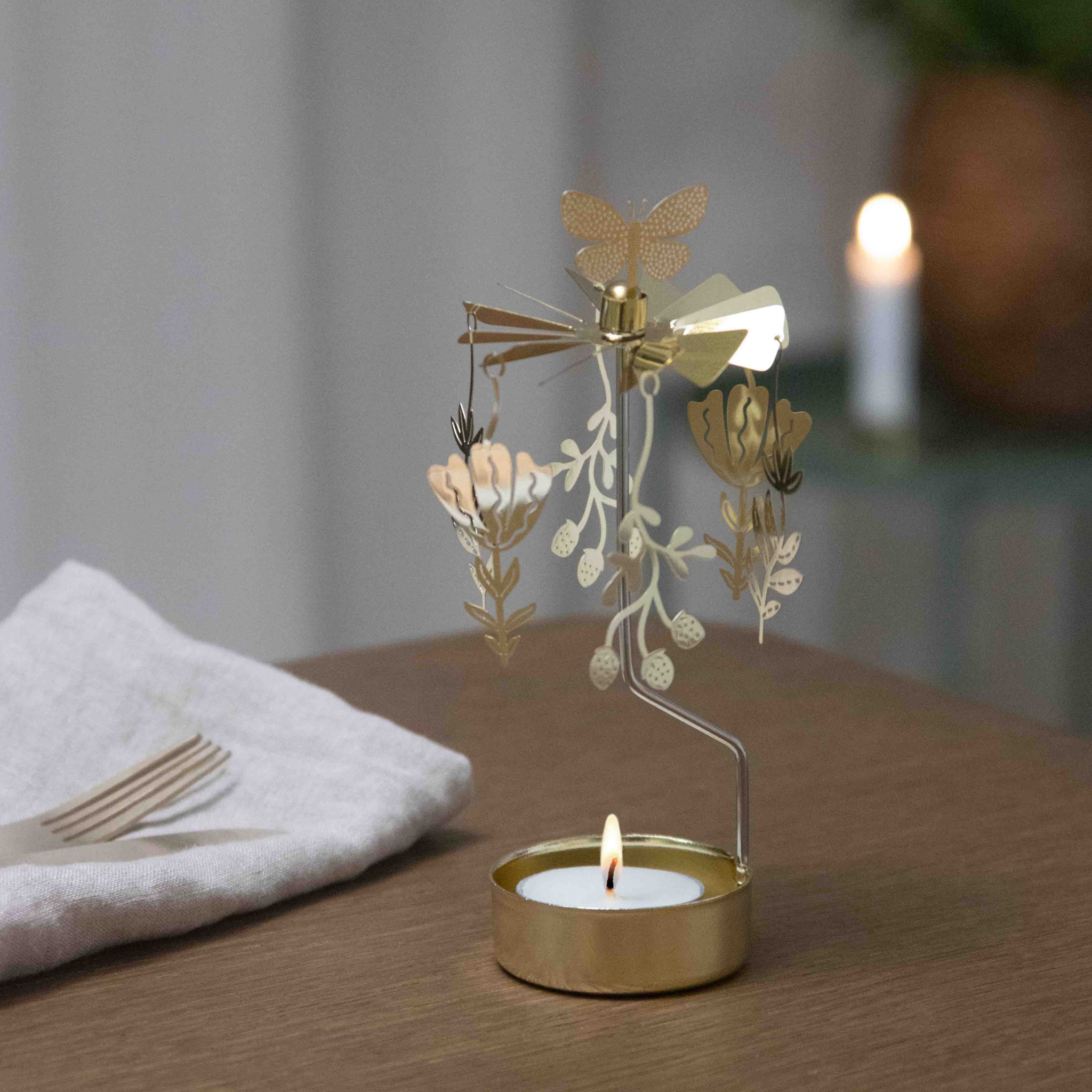 One of our best sellers! Like magic, these rotating candle holders start spinning when the warm air from the candle rises. The decorations around the candle carousel will reflect and spread light across nearby walls and ceilings. Everything you need comes in a gift box including a tea light candle and simple assembly instructions.