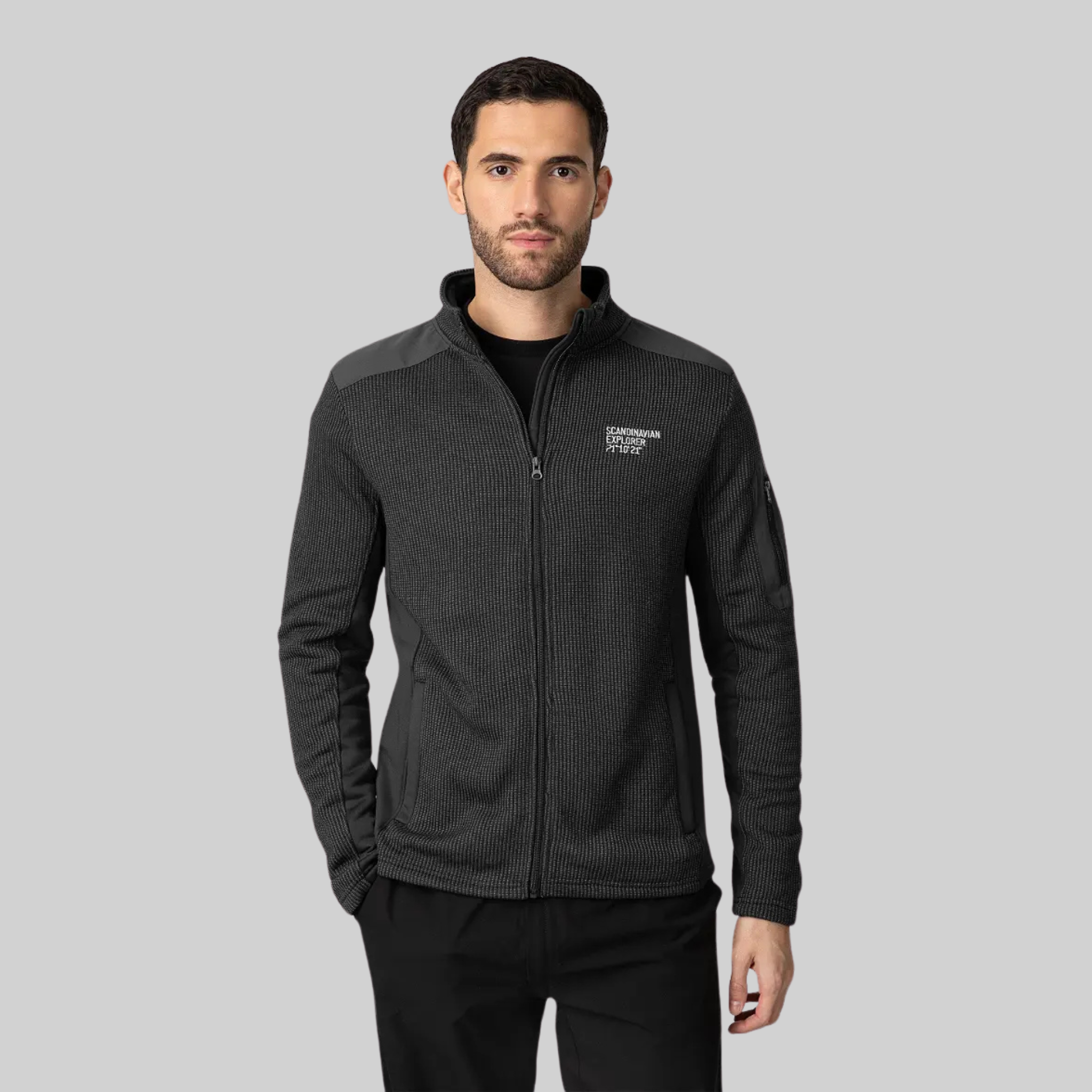 Our unisex hybrid fleece jacket combines comfort and warmth with a sleek, practical design, making it an ideal choice for both outdoor adventures and casual wear. Crafted without a hood for a streamlined look, this jacket features soft fleece panels and durable outer fabric for a balance of comfort and resilience. With easy-access side pockets and a convenient zippered pocket on the left arm for small essentials, it’s as functional as it is stylish. Designed for layering or wearing on its own, this hybrid fleece jacket is a versatile addition to any wardrobe.