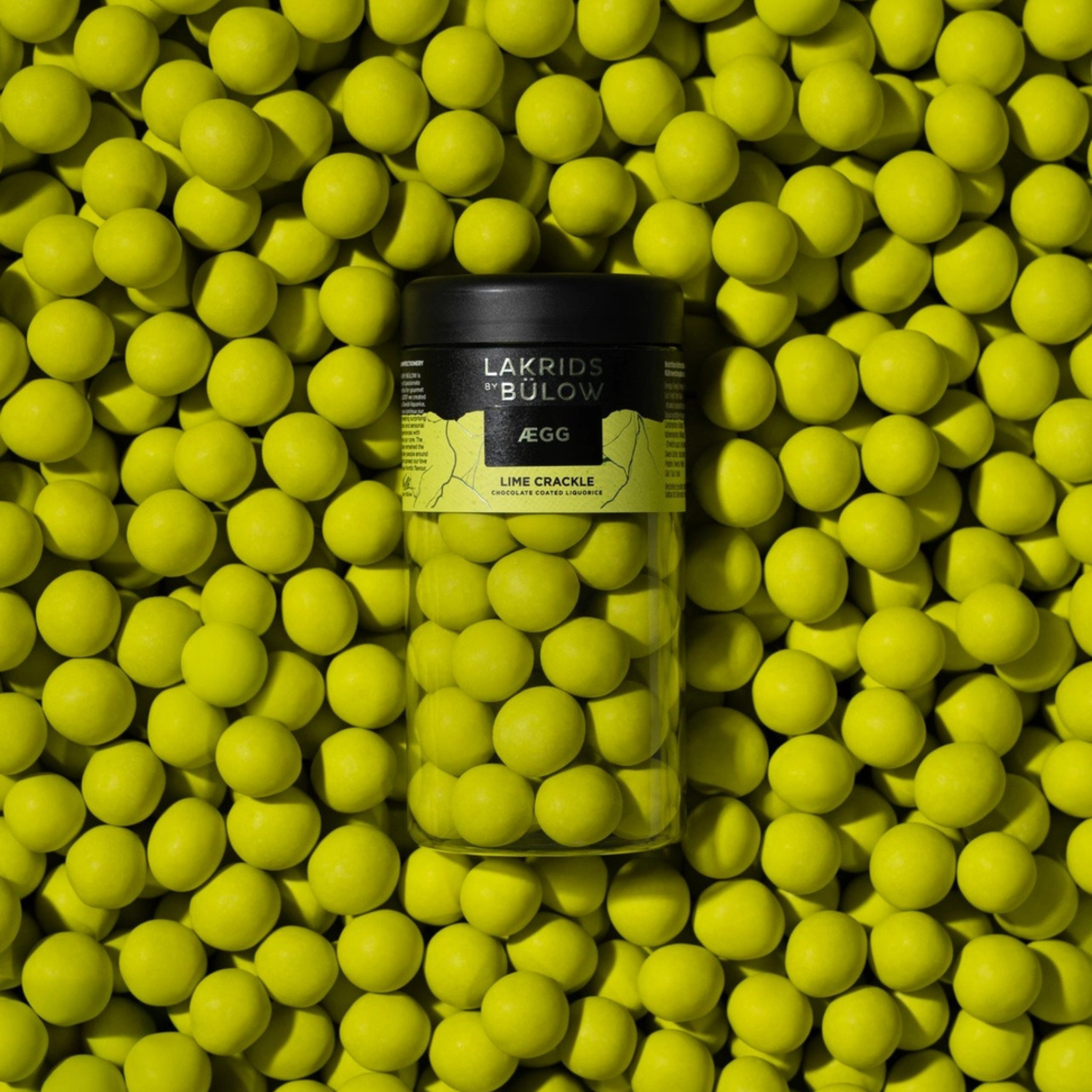 Limited Edition LIME CRACKLE: white chocolate coated licorice with a crispy shell in Small (4.4 oz) & Regular (10.4 oz) jars. LIME CRACKLE blends tangy lime and lemon with creamy white chocolate, a salty licorice core, and a crisp green sugar shell. This fusion of sweet and zesty delivers a delightful citrus zing and a satisfying crunch that leaves your taste buds craving more. - Made in Copenhagen, Denmark with premium ingredients. We ethically source all our ingredients from the very best suppliers in the Nordics and around the world! - We are the first B-Corp certified Scandinavian and Nordic confections company and we are the first confections factory in the world to run solely on green power! - Gluten-free: Made from gluten-free rice flour. - Non-GMO: Always.
