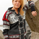 Gjestal Classic 100% Wool Charcoal Cardigan with Braided Trim and Clasps. Unisex Sizes