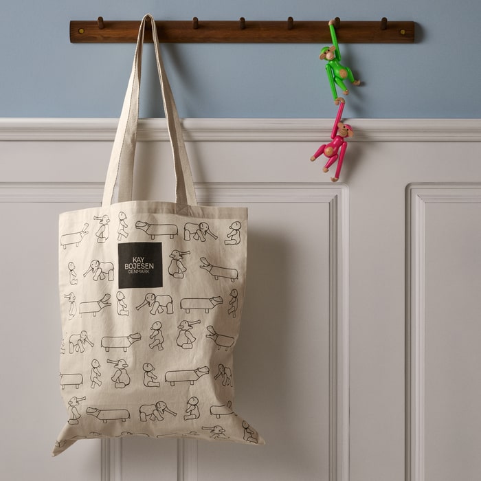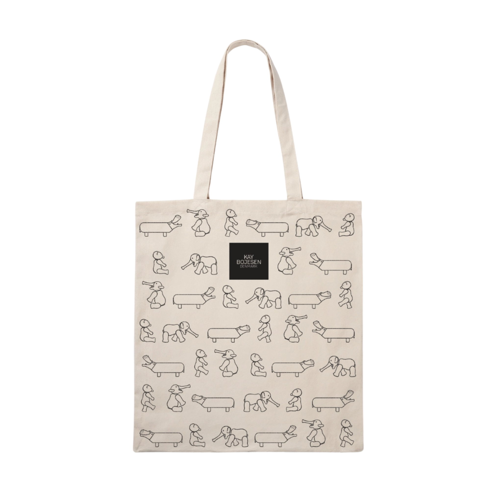 Take your love for original Danish design and iconic craftsmanship everywhere with this Kay Bojesen tote bag. Made from 100% GOTS-certified cotton, this exclusive tote measures 15.7" x 17.7", making it the perfect companion for your wooden design icon or any of your other favorite items. The bag features a beautiful pattern of animals from the Liliput series, showcasing miniature versions of three of Kay Bojesen’s most famous wooden figurines — the Bear, Elephant, and Hippo. Kay Bojesen is synonymous with original Danish design. He remains one of the biggest Danish designers from the 1900s and represents the story of one of the strongest and most loved brands in Danish design history, with classics in a class of their own. For decade after decade, he crafted original stories out of wood, resulting in a creative, playful world filled with love, smiling lines, and unique shapes.