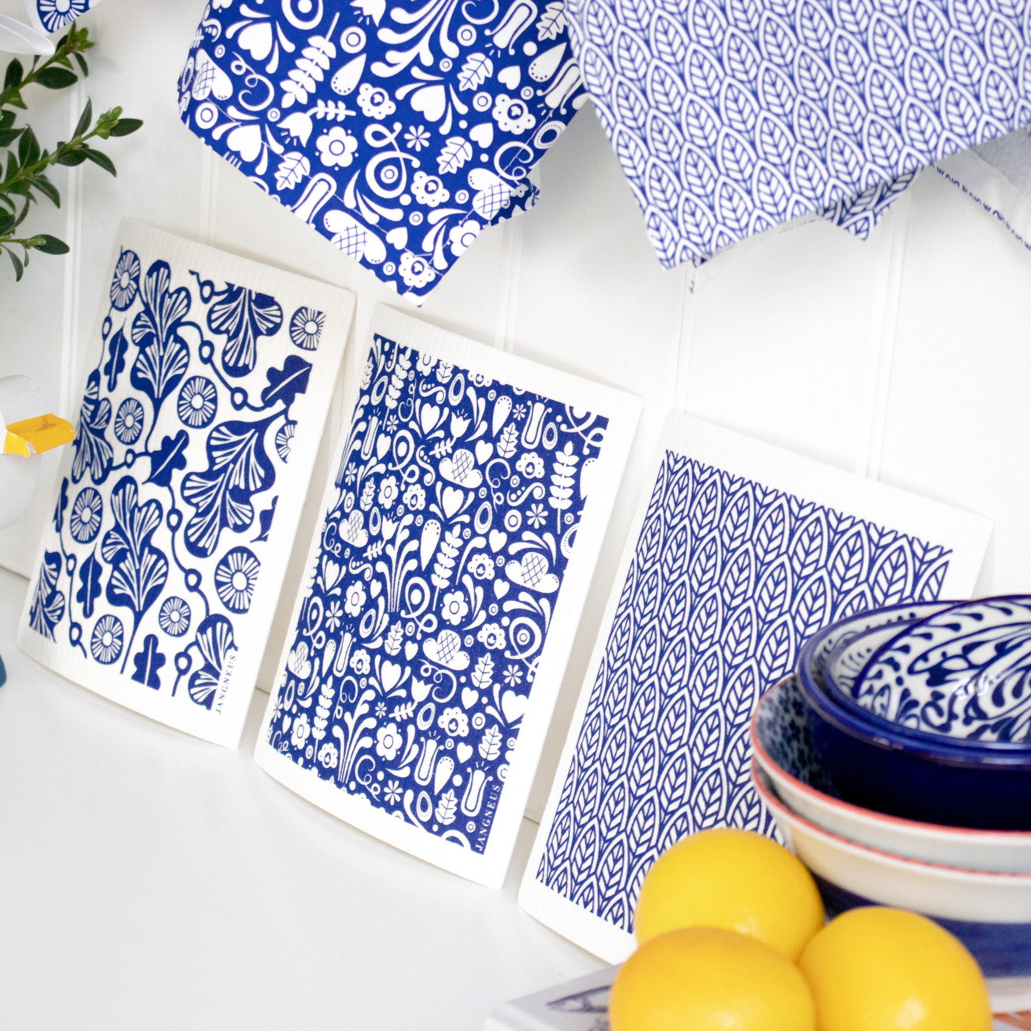Amazing Swedish Dishcloth - Blue Dala Pattern'