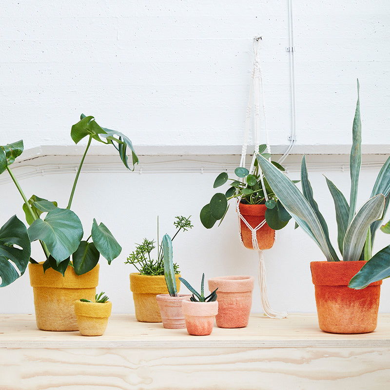 Aveva’s handmade flowerpots in 100% wool with a flat bottom and two different colors that blend together, creating a lovely ombré effect. The inside is coated with natural rubber that makes the flowerpot waterproof. Follow care instructions on hang tag.  Available in small, medium and large, and designed in Sweden.