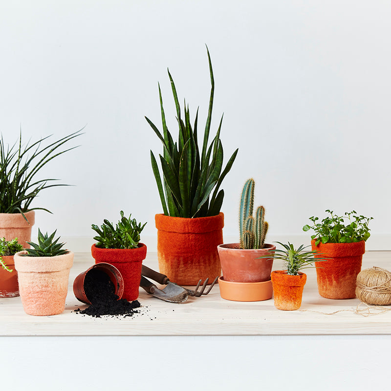 Aveva’s handmade flowerpots in 100% wool with a flat bottom and two different colors that blend together, creating a lovely ombré effect. The inside is coated with natural rubber that makes the flowerpot waterproof. Follow care instructions on hang tag. Available in small, medium and large, and designed in Sweden.