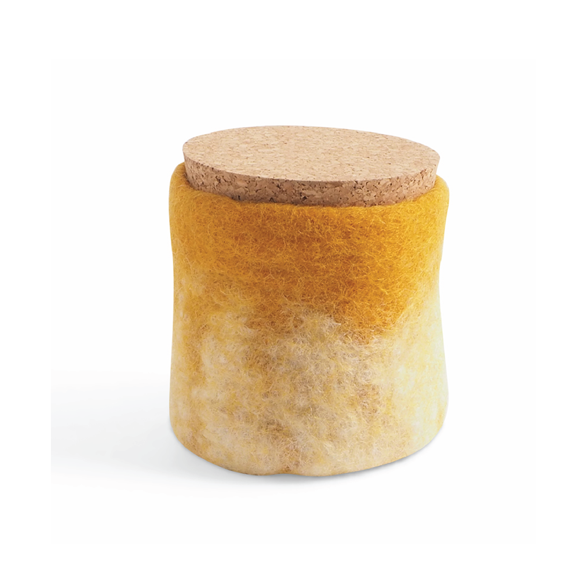 Handmade jar in wool, with a lid of cork. A natural storage for your smaller possessions. Perfect for your kitchen, bathroom or your jewelry.