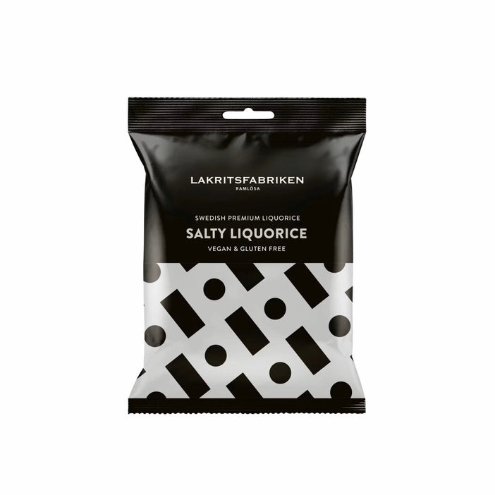 An 100g bag filled with juicy, gluten-free and vegan salty soft licorice.