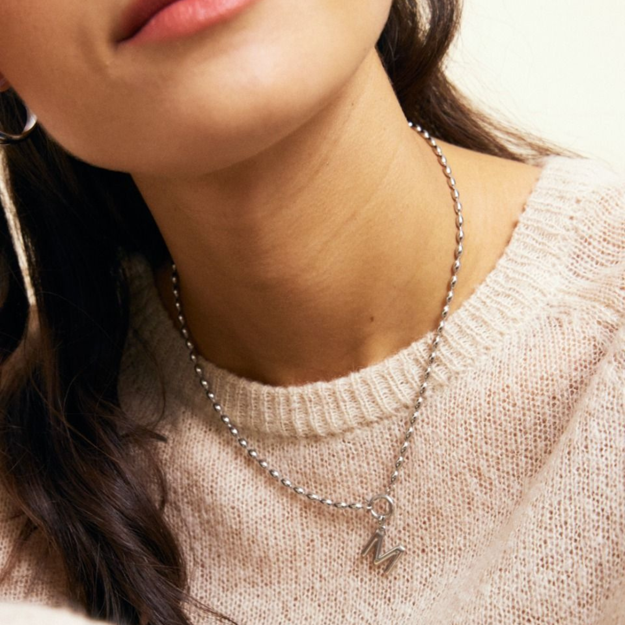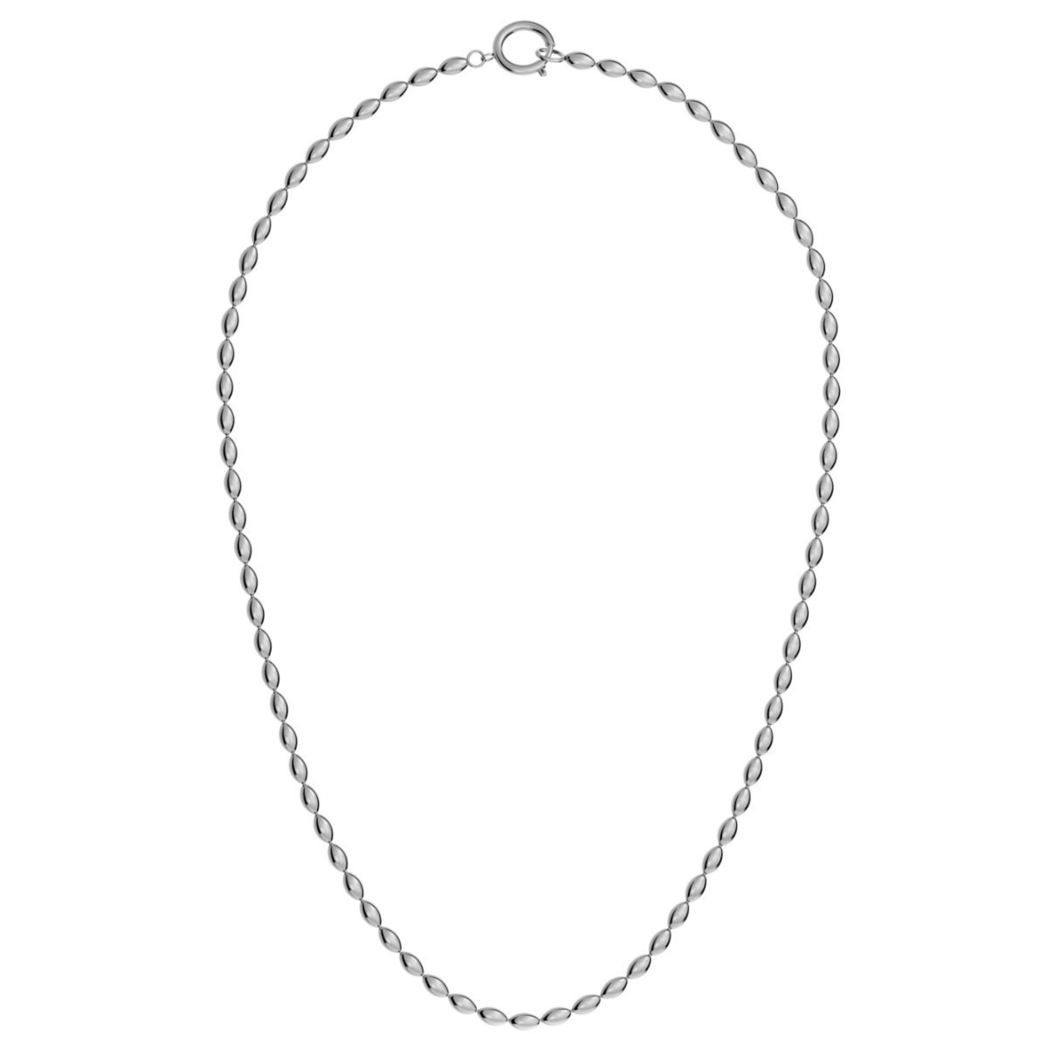 Cabo is a line featuring classic oval shapes that suit everyone. The necklace features a ring lock where you can hang a charm for a personal touch. Cabo can be worn on its own, but also looks great when layered with other necklaces. The necklace has small, rounded oval metal beads that are connected by a short metal bar, seen here in shiny stainless steel. Pair with additional pieces from the Cabo collection.
