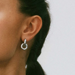Chunky Eternal is a modern classic with soft, rounded shapes that flow around each other infinitely. An updated version of our popular Eternal Orbit line. The earring can be worn with or without the removable pendant. It has a little weight and sits nicely on the ear as the pin is placed in the middle of the bracket, for an elegant touch in both everyday wear and special occasions. Seen here in shiny stainless steel.