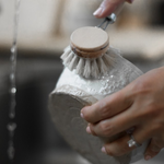 Dish brush made of beech wood with replaceable brush head. Horse hair is soft and gentle, and effectively cleans without scratching porcelain.