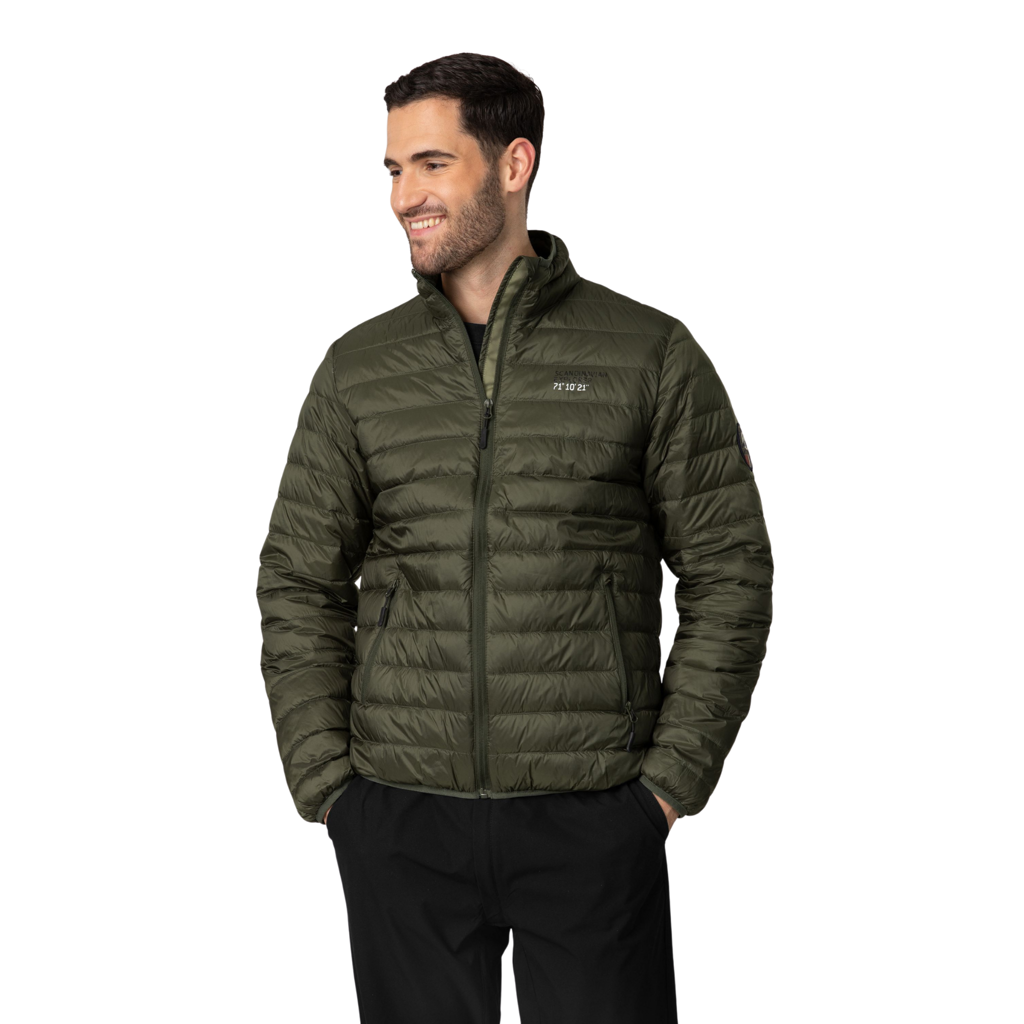Hoodless Ultra Light Down Jacket - Olive Green