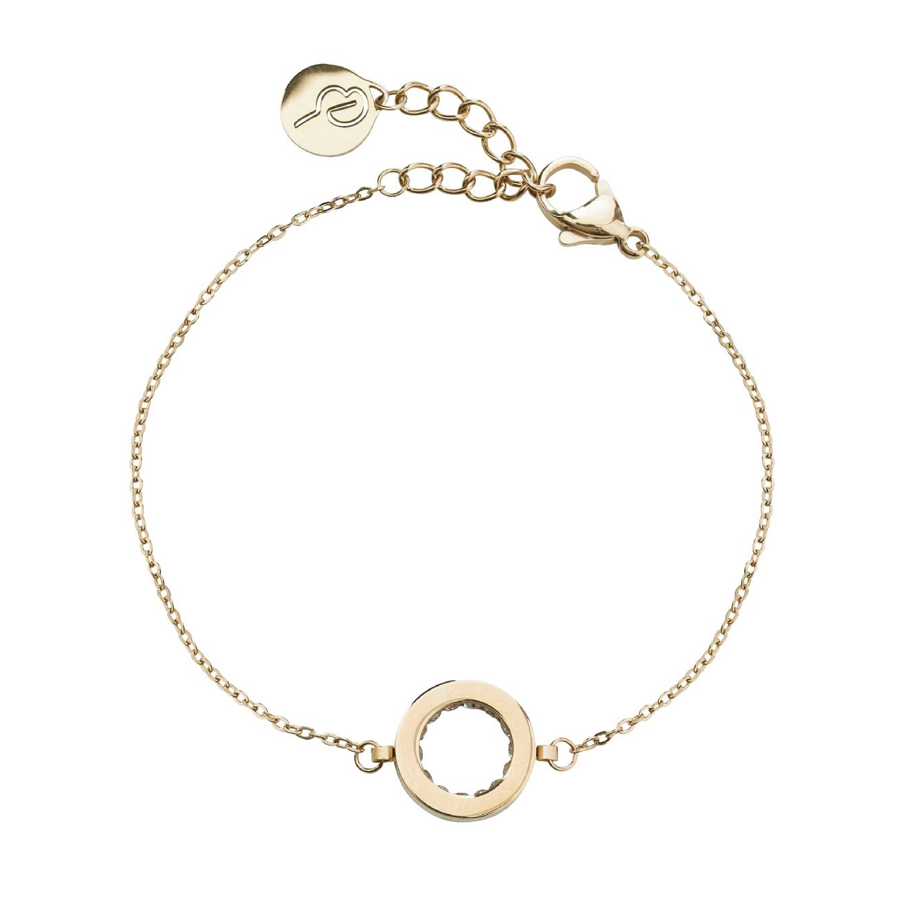 DIAMETER 12 MM, ADJUSTABLE LENGHT OF BRACELET 16-19 CM. CUBIC ZIRCONIA, SHINY 14K GOLD PLATED STAINLESS STEEL. NICKEL SAFE