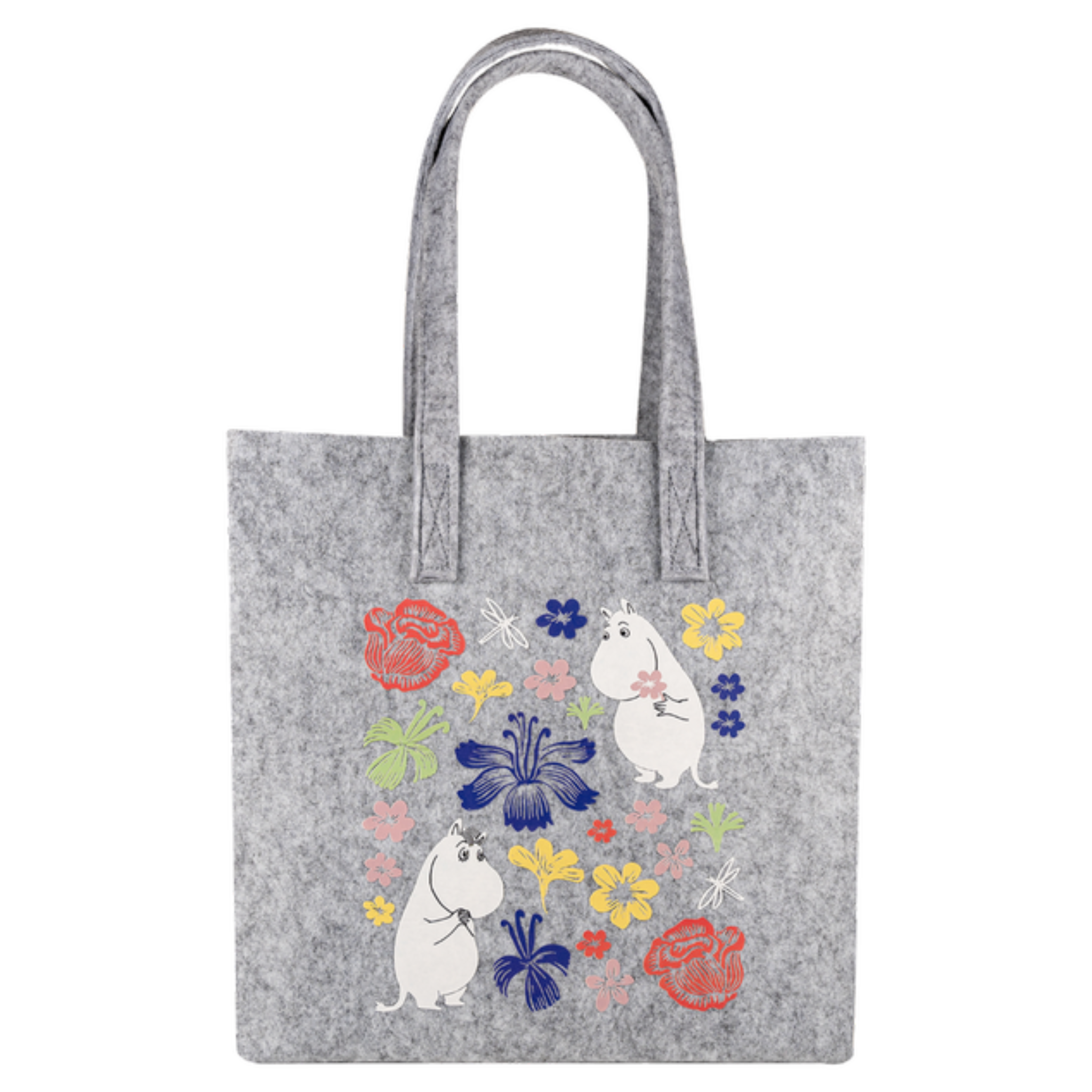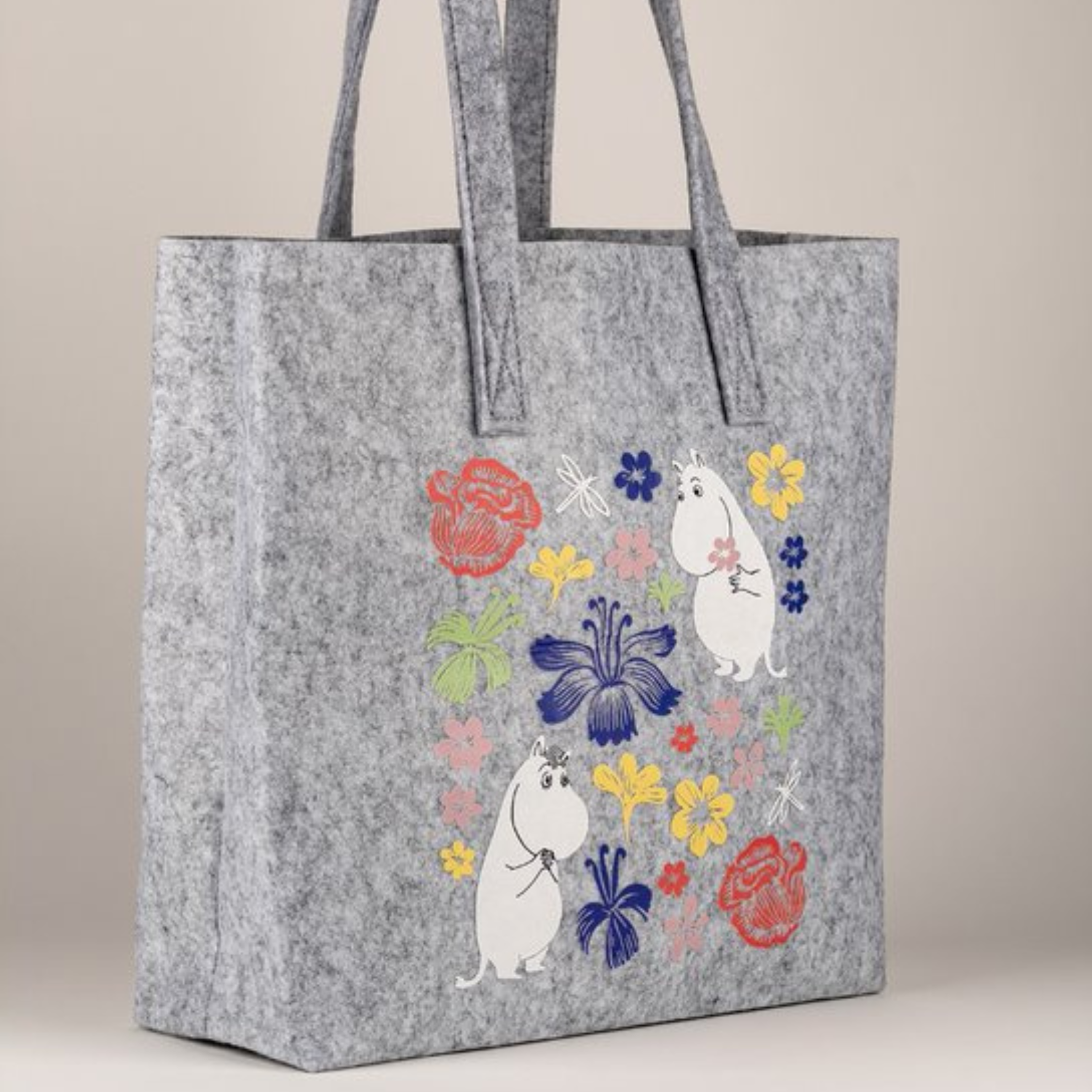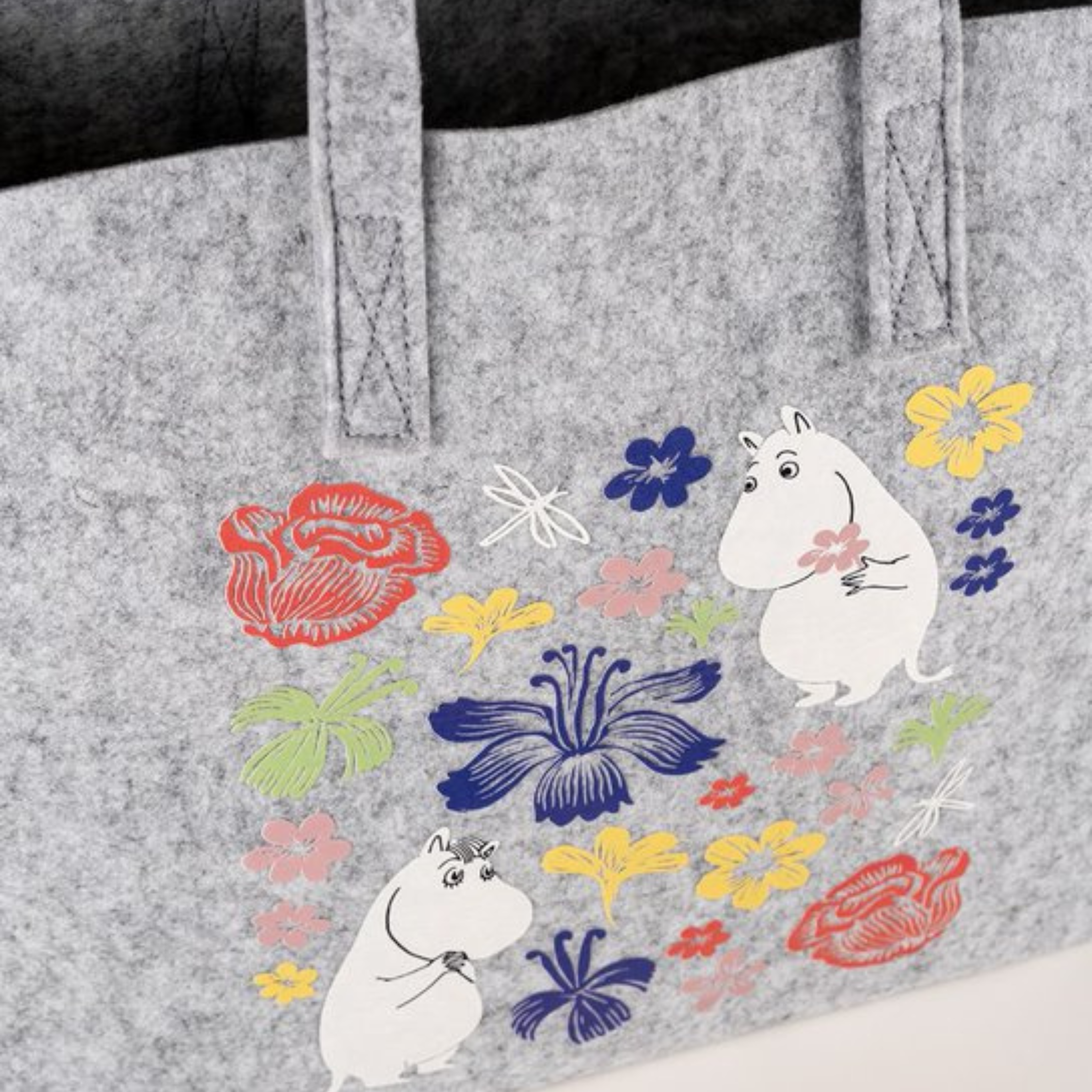 Moomin Flowers Tote Bag. Felt like material. Made out of recycled plastic (r-PET).