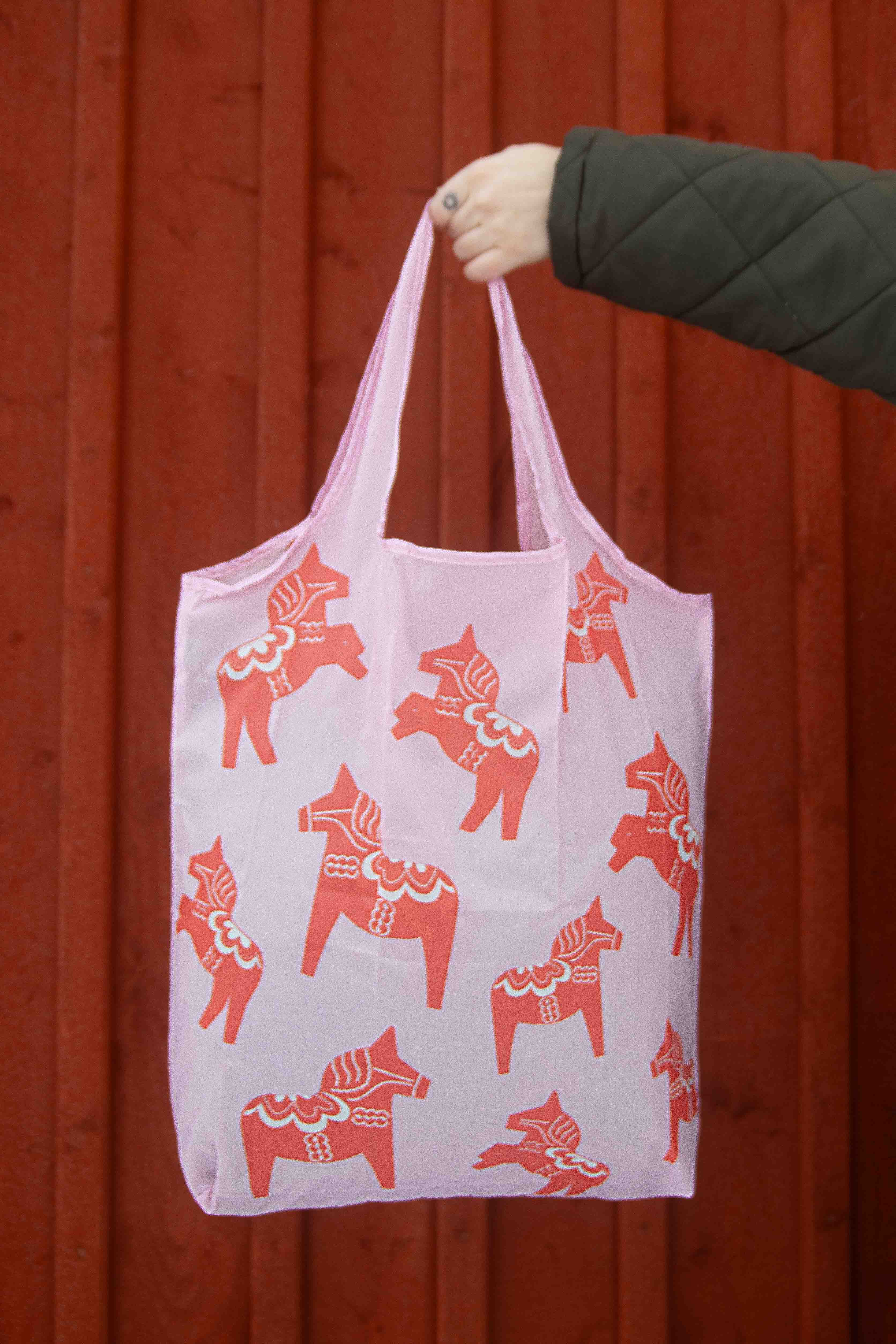 Reusable bag from Pluto Produkter with Dala Horse pattern! Made from 100% recycled plastic bottles.