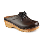 The Troentorp "Audubon" clog features the classic tie up that has been a popular and unique style for decades. The laces allows for easy adjustment of the clog depending on the shape of your foot. This model works great to accommodate a wider foot.