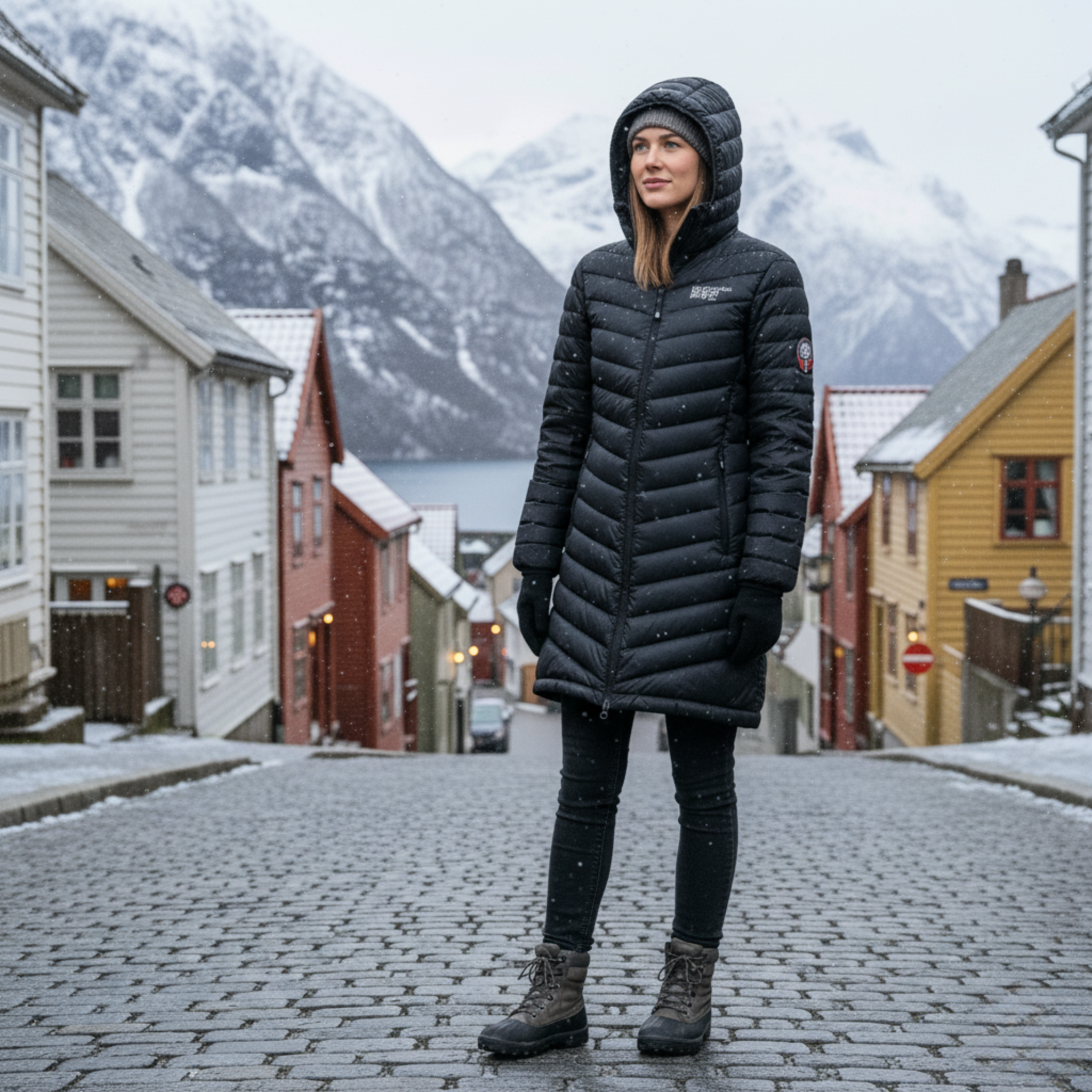 Developed in Norway, this coat is filled with a light down making it comfortable to wear and easy to pack when traveling. It has the water-repellency and insulation you need to stay warm in cooler weather and can be worn with other layers for those extra cold days. The insulation is 90% down and 10% feather. The jacket is water-resistant to keep you dry.